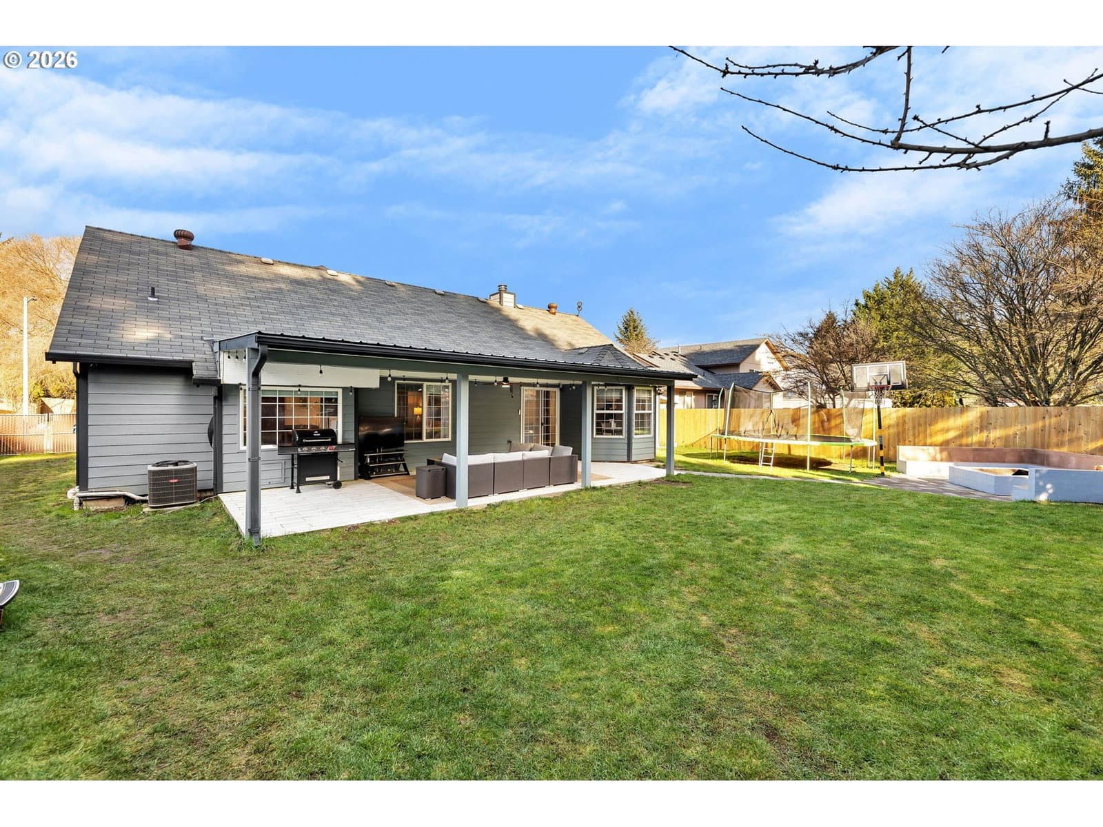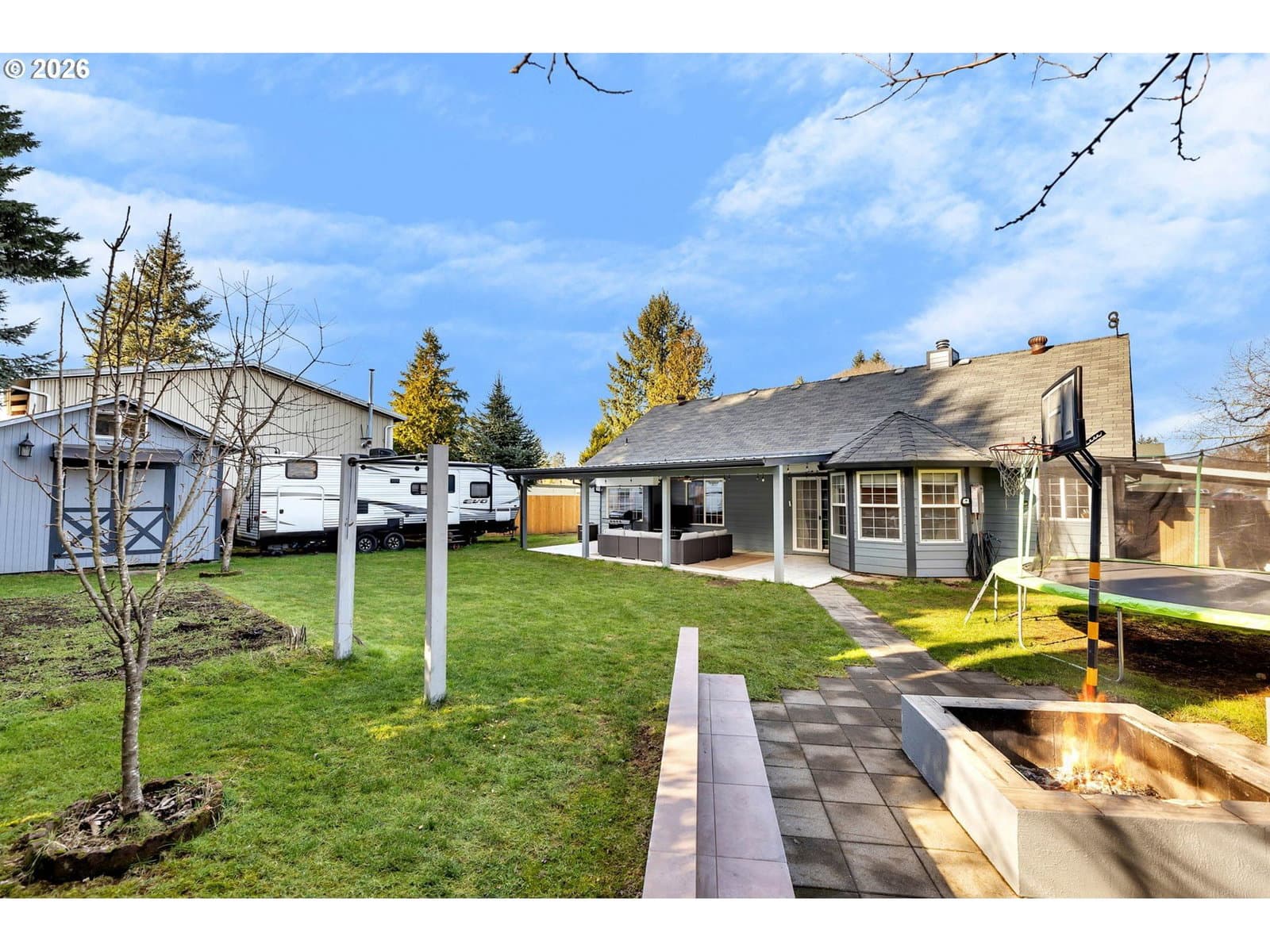 Welcome to this one-of-a-kind, beautifully updated single-level home with 4 bedrooms and an office, 2-bathrooms in the desirable Vancouver, Washington! Nestled on a huge lot with mature trees and lush landscaping, offers the perfect blend of comfort, style, and outdoor living. Step inside to discover vaulted ceilings and an abundance of natural light that create an open, airy feel throughout the main living spaces. The thoughtfully updated kitchen features granite countertops, a stylish tile backsplash, stainless steel appliances, ample cabinetry, and a spacious peninsula perfect for entertaining or everyday living. The adjoining dining area overlooks the backyard and provides seamless indoor-outdoor flow. The primary suite offers a peaceful retreat, while three additional bedrooms provide flexibility for guests, a home office, or hobbies. Outside, the expansive backyard is truly special—fully fenced with a large lawn, mature evergreens for privacy, and plenty of room for play, gardening, or gatherings. Enjoy evenings around the custom fire pit patio, complete with built-in seating. A storage shed adds convenience, and the oversized lot offers endless possibilities. Additional highlights include a two-car garage, attractive curb appeal with manicured landscaping, and a quiet residential setting close to 164th and Mill Plain offering easy access to parks, schools, shopping, the Portland Airport and commuter routes. This rare single-level gem combines space, updates, and outdoor living in one incredible Vancouver location—don’t miss your opportunity to call it home! Buyer to verify all information. Fridge, washer, and dryer are excluded from sale.