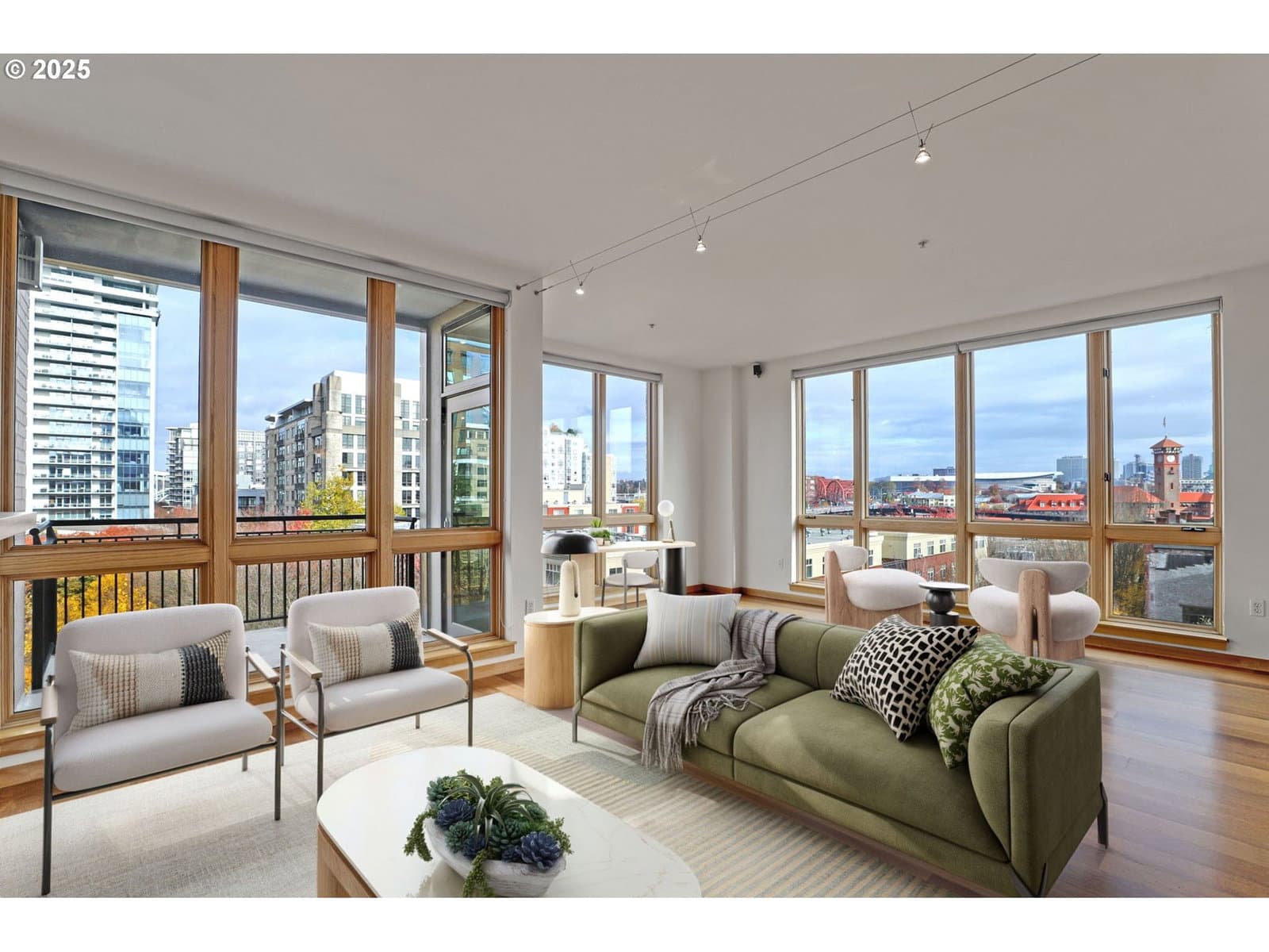 Discover luxury living in this immaculate two-bedroom, two-bathroom condo situated at the coveted northeast corner of Tanner Place. Bathed in natural light from stunning floor-to-ceiling wood windows, the residence showcases captivating northern vistas of Jamison Square Park and the dynamic Pearl cityscape, complemented by enchanting eastern views that welcome the morning sun. Enjoy tranquility in the beautifully landscaped and secure private courtyard, alongside the added convenience of a secure lobby, dedicated concierge service deeded parking and storage. Positioned in the vibrant Pearl District, this home offers unparalleled access to upscale dining, boutique shopping, dynamic cultural experiences, and efficient street car, placing you at the core of urban sophistication. The turnkey lifestyle of this exceptional condo provides an ideal balance of freedom, flexibility of city living. Upgrades include a new heat pump and washer/dryer. Walk Score 99 Bike Score 98. An impeccable upscale city residence!