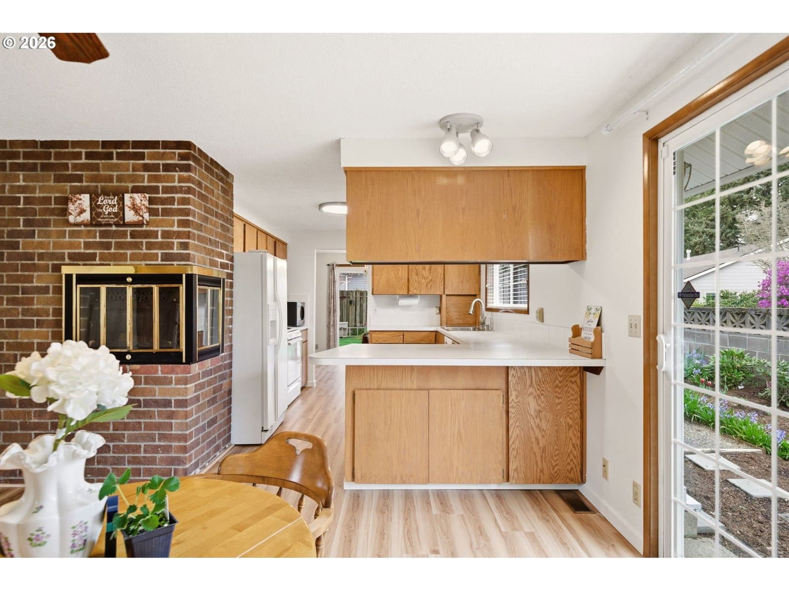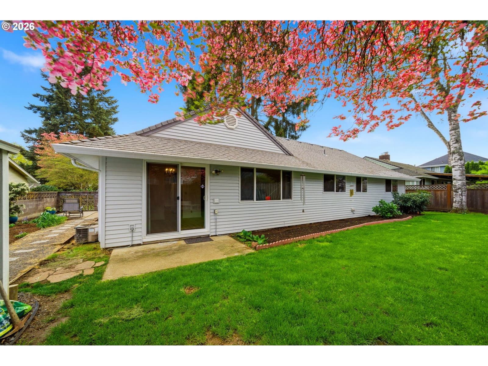 Welcome home to Tualatin. This beautifully maintained single-level home offers classic charm and functional living. Fresh interior paint, brand new flooring, and carpet throughout make this home move-in ready. Enjoy a spacious, light-filled layout with generous living and dining areas and a kitchen that flows seamlessly into the heart of the home. Many of the kitchen cabinets include built-in sliding drawers, providing easy access to your items and helping keep everything well organized. Well-sized bedrooms, including a private primary suite, provide comfort and flexibility. Step outside to a beautifully landscaped and fenced yard featuring a 10x20 Tuff Shed with electricity—perfect for storage, hobbies, or a workshop. There are gutter guards on the roof and the patio is hot tub ready! Oversized 2-car garage has built in cabinets, a workbench and an abundance of storage. There is RV parking on the side of the garage. Walking distance to Jurgens park which offers a playground and a dog park. Conveniently located near shopping, dining, and top-rated schools, this home offers both comfort and convenience in a desirable neighborhood. This one won't last!