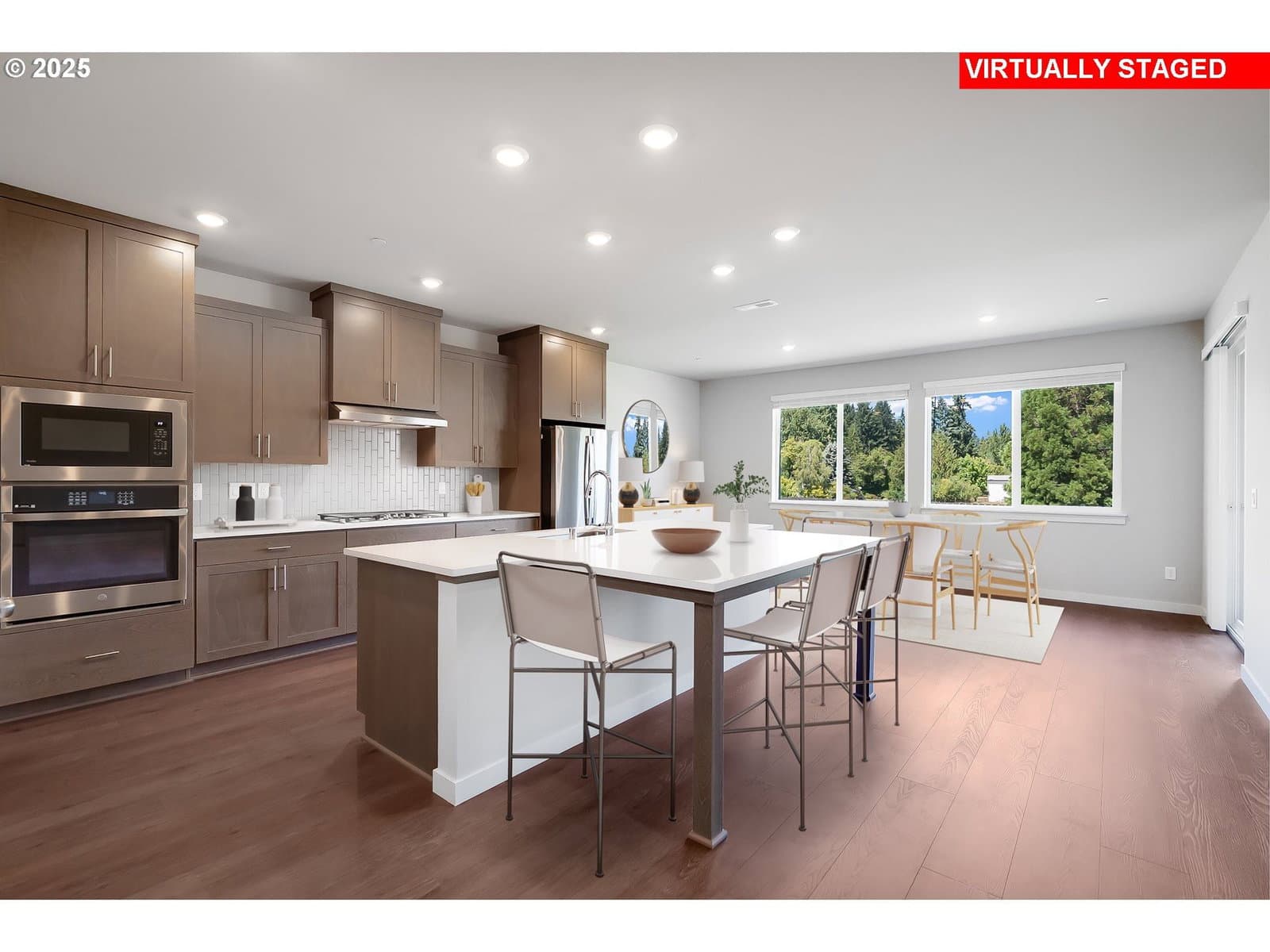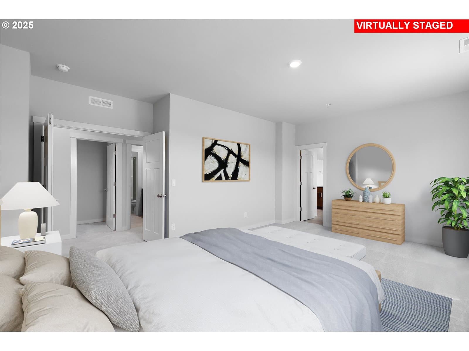 This two-story new construction Hammond home in Salmon Creek Ridge features a three-car garage and is just minutes from Salmon Creek trails, I-5, and shopping. The main floor includes a private bedroom and bath, a den off the entry, and an open kitchen, dining area, and great room warmed by a fireplace. Upstairs, a loft connects three bedrooms, including a primary suite with a soaking tub and walk-in closet. The kitchen includes quartz countertops, shaker-style cabinets, and a vertical tile backsplash. LVP flooring runs through the kitchen and entry, and LVT covers baths and laundry. The primary bath has a tiled shower with a separate tub. Wooden shelving, landscaping, and fencing complete the home. Central air conditioning, a refrigerator, washer and dryer, and blinds are included. Located on homesite 49, this home is move in ready. Flex credit/closing cost incentive available when financing with preferred lender! Use towards rate buydown and closing costs. Builder Paperwork, 1% E Mto FATCO,