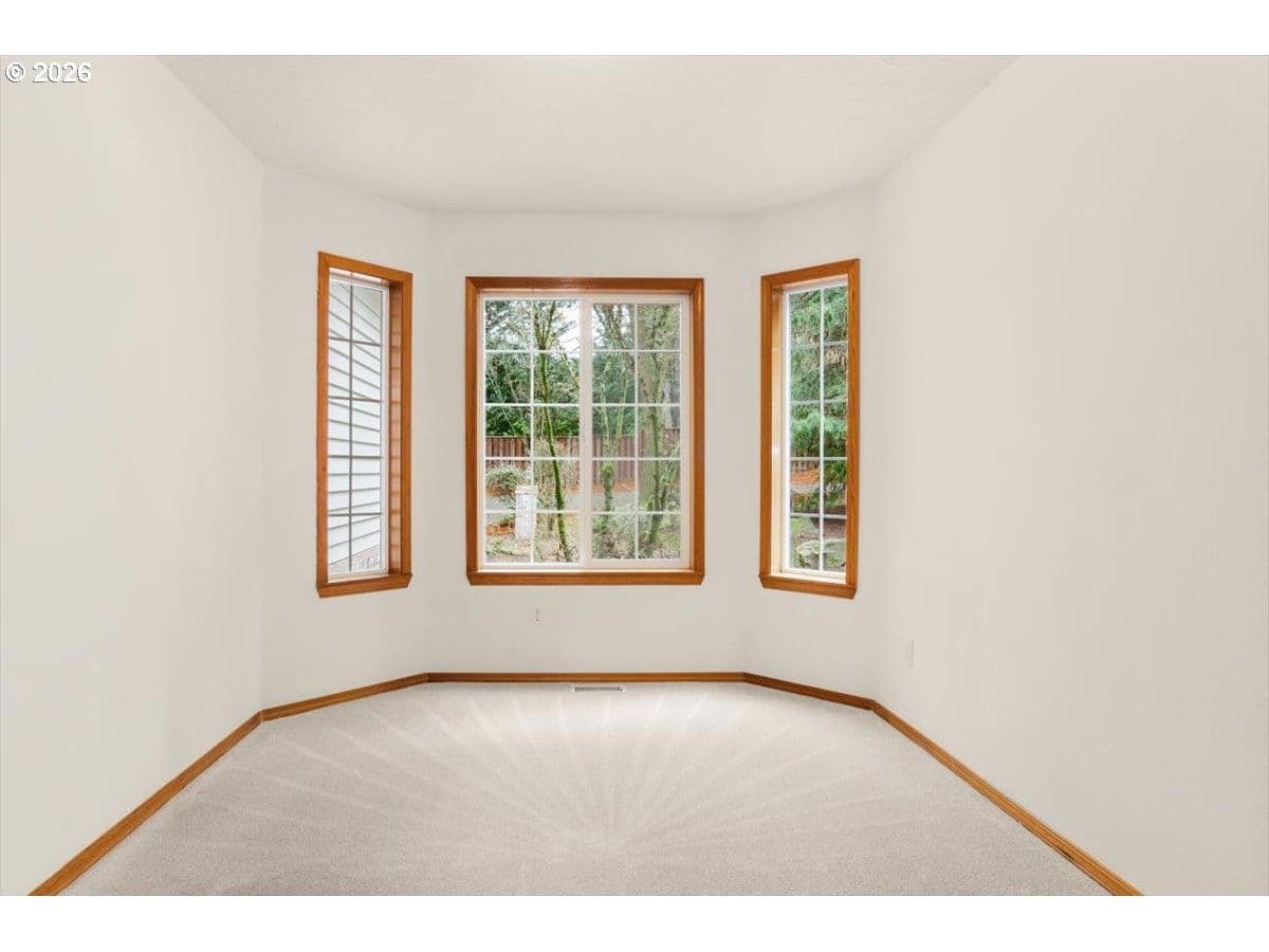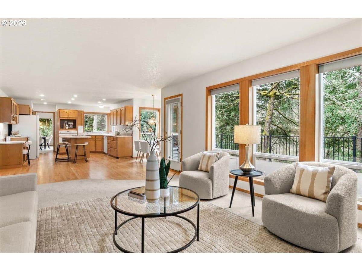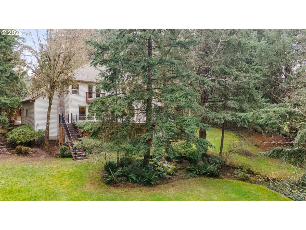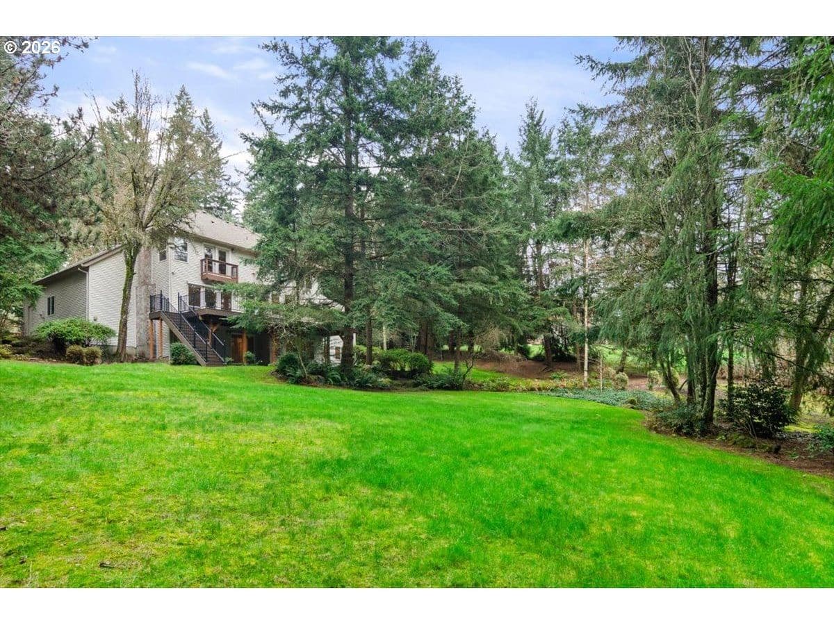 Cooper Mountain retreat with park-like 1.69-acres of serene surroundings. On the market for the first time since it was built in 1993! Thoughtfully maintained and lightly lived in, featuring expansive rooms and territorial views. Hardwood floors, new carpet on the main and upper levels, and new LVP flooring in the primary bathroom. Connected to sewer in 2026. The spacious kitchen offers abundant cabinetry, pantry, eating bar, dining area, tech desk, new dishwasher and disposal, and access to a large deck and backyard. Original woodwork, french doors, and tray and vaulted ceilings add enduring character. Bay windows and walls of glass fill the home with natural light and showcase scenic views. Formal living room with gas fireplace and formal dining room. The family room with fireplace opens to the kitchen, creating comfortable everyday living and easy entertaining spaces. Generous primary suite with gas fireplace, walk-in closet, dual sink vanity, walk-in shower, jetted tub and private water closet. Spacious main level laundry room with workspace and built-ins. Lower level offers flexible space ideal for a home office, gym, yoga or art studio, media or game room. Oversized 3-car garage with built-ins for storage. Set back from the street offering peaceful surroundings, with frequent visits from deer, birds and other wildlife. Ideal property for pets, play, gardening and gatherings. Just minutes to everyday essentials, Cooper Mountain Nature Park, Cooper Mountain Vineyards and Jenkins Estates for events and scenic walks. Plenty of space to store an RV and a boat with ample additional parking. Refrigerator, washer and dryer included. Move-in ready! A rare opportunity and a must see! Schedule a tour today!