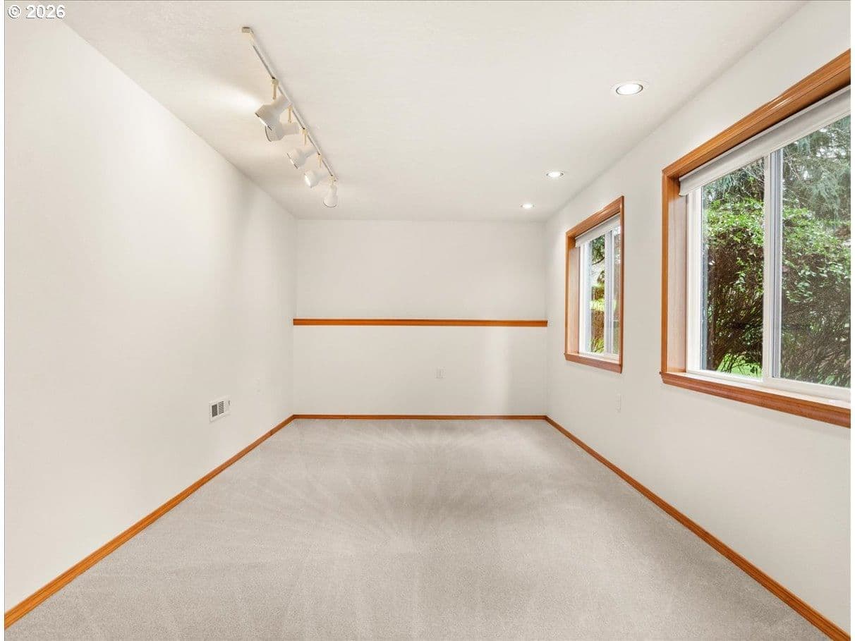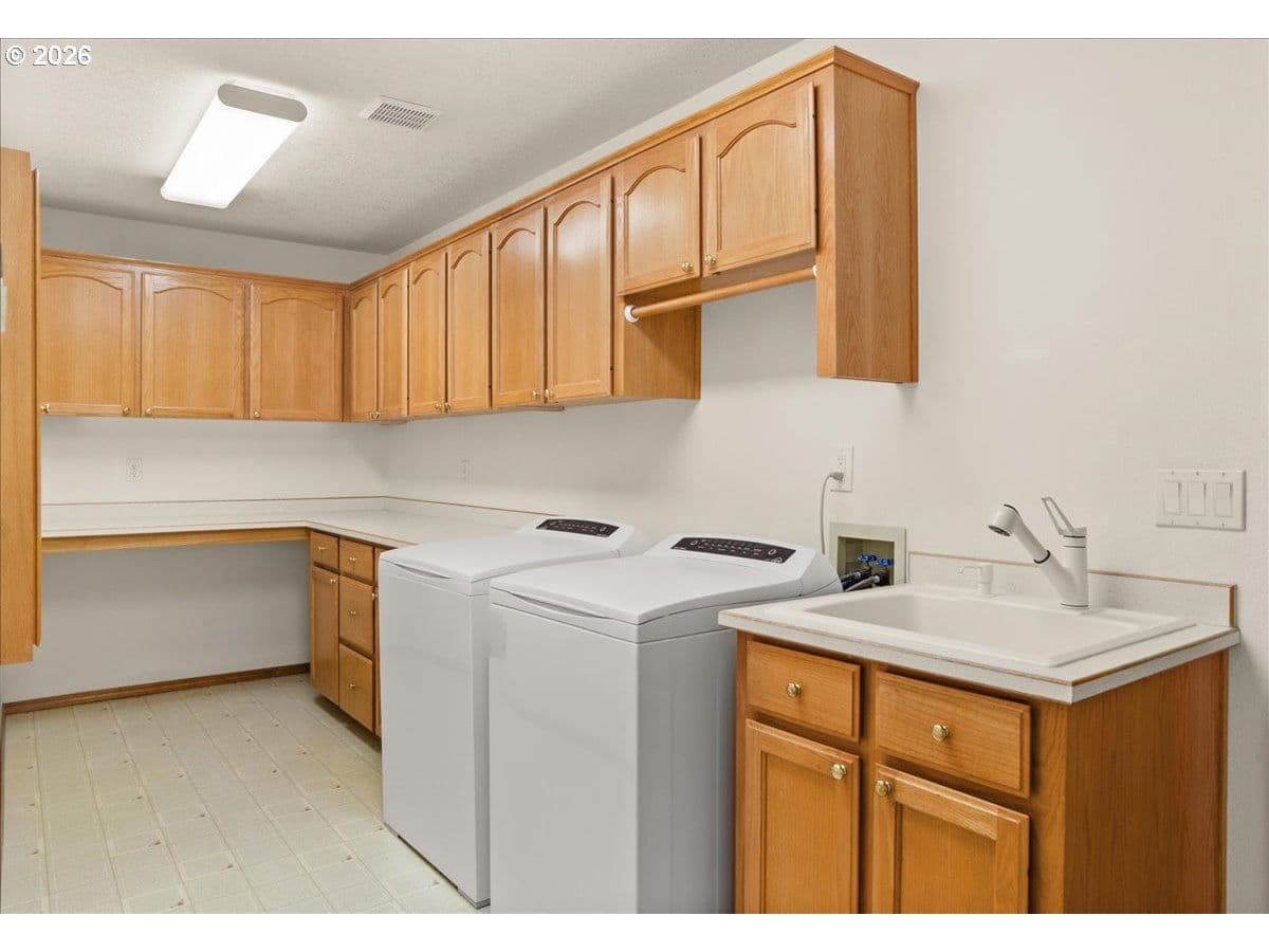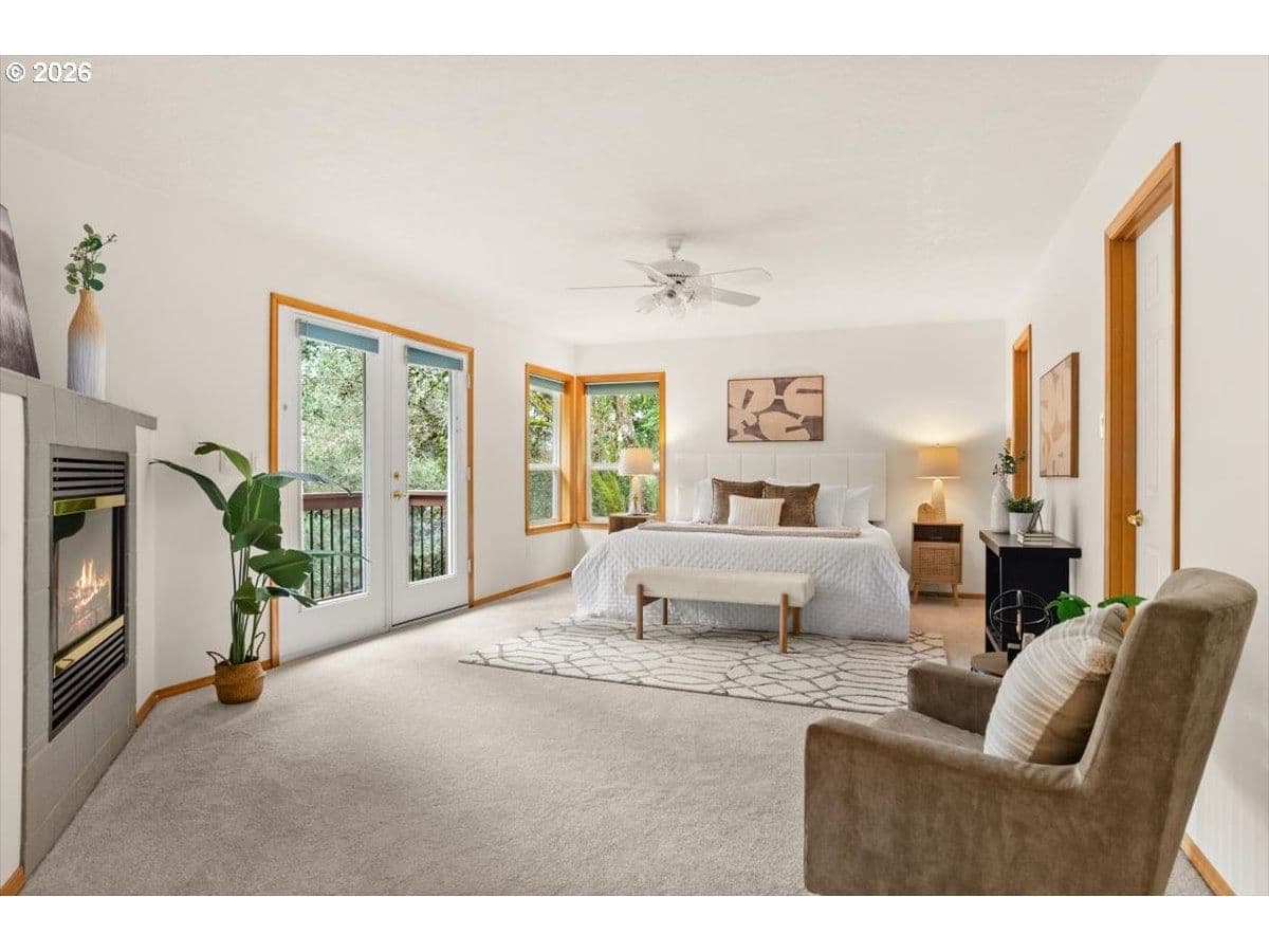 Cooper Mountain retreat with park-like 1.69-acres of serene surroundings. On the market for the first time since it was built in 1993! Thoughtfully maintained and lightly lived in, featuring expansive rooms and territorial views. Hardwood floors, new carpet on the main and upper levels, and new LVP flooring in the primary bathroom. Connected to sewer in 2026. The spacious kitchen offers abundant cabinetry, pantry, eating bar, dining area, tech desk, new dishwasher and disposal, and access to a large deck and backyard. Original woodwork, french doors, and tray and vaulted ceilings add enduring character. Bay windows and walls of glass fill the home with natural light and showcase scenic views. Formal living room with gas fireplace and formal dining room. The family room with fireplace opens to the kitchen, creating comfortable everyday living and easy entertaining spaces. Generous primary suite with gas fireplace, walk-in closet, dual sink vanity, walk-in shower, jetted tub and private water closet. Spacious main level laundry room with workspace and built-ins. Lower level offers flexible space ideal for a home office, gym, yoga or art studio, media or game room. Oversized 3-car garage with built-ins for storage. Set back from the street offering peaceful surroundings, with frequent visits from deer, birds and other wildlife. Ideal property for pets, play, gardening and gatherings. Just minutes to everyday essentials, Cooper Mountain Nature Park, Cooper Mountain Vineyards and Jenkins Estates for events and scenic walks. Plenty of space to store an RV and a boat with ample additional parking. Refrigerator, washer and dryer included. Move-in ready! A rare opportunity and a must see! Schedule a tour today!