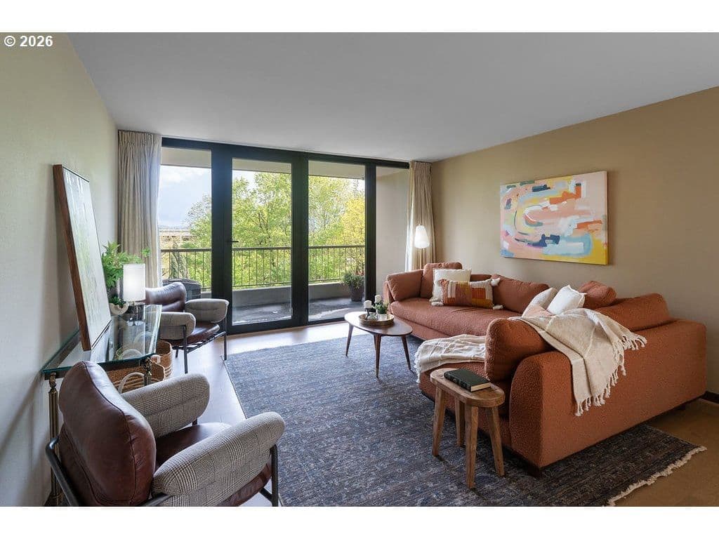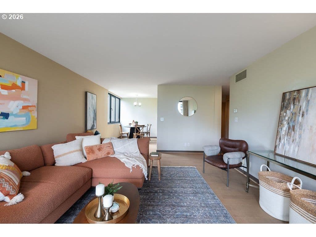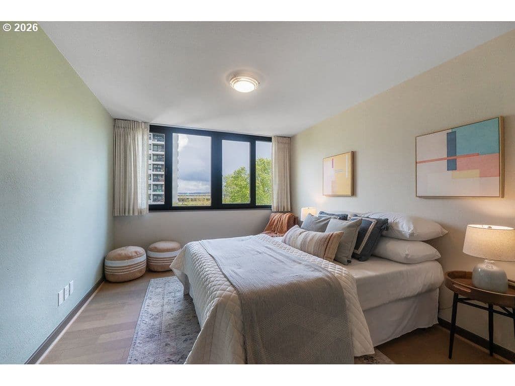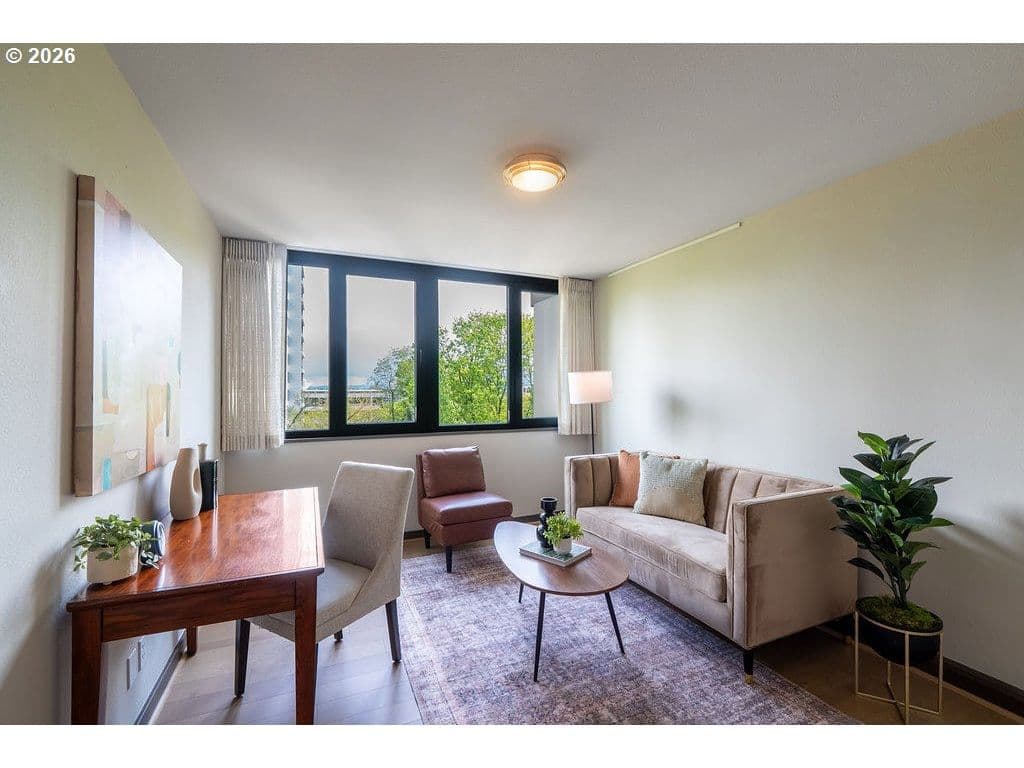 Urban living meets iconic design in this corner-unit home located in the historic Halprin Landscape District. Tree-lined paths and green spaces surround the landmark Skidmore, Owings & Merrill–designed SW Harrison West community, offering a timeless Portland lifestyle.Move-in ready, this 2-bedroom, 2-bath unit of the original owner, sits in the heart of downtown Portland with easy access to the waterfront, PSU, museums, theaters, parks, restaurants, shops, daily conveniences, TriMet and bus lines. Enjoy the quiet space overlooking the courtyard with peak-a-boo eastern views. Luxury vinyl plank throughout the floor plan. Recent updates from the main entrance to the front door of the unit, welcome you to your own city haven. The community offers an extensive list of HOA amenities: pool, spa, sauna (South Tower), gated courtyard, secure parking & storage, common areas, community room, BBQ area, high-speed internet, laundry facilities and evening security. HOA dues also include laundry, on-site management, grounds maintenance, water, sewer, garbage. Pets allowed with restrictions, rentals permitted with no rental cap or short-term rentals. Recent updates include exterior paint and deck resurfacing in 2021, with elevator improvements currently in progress. **Move-in fees and owner orientation required.