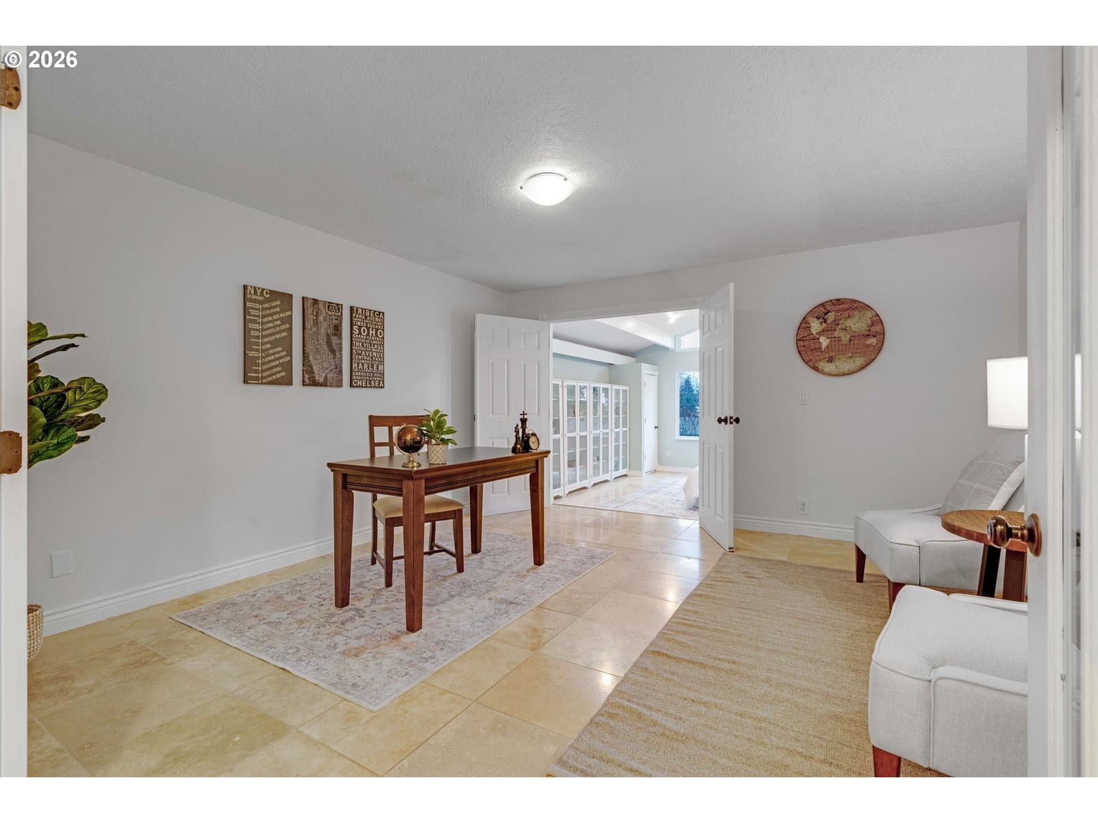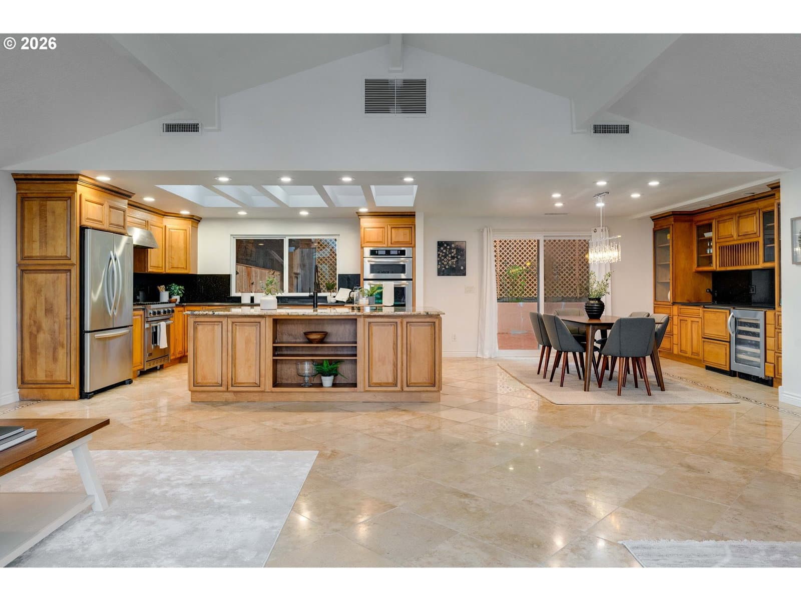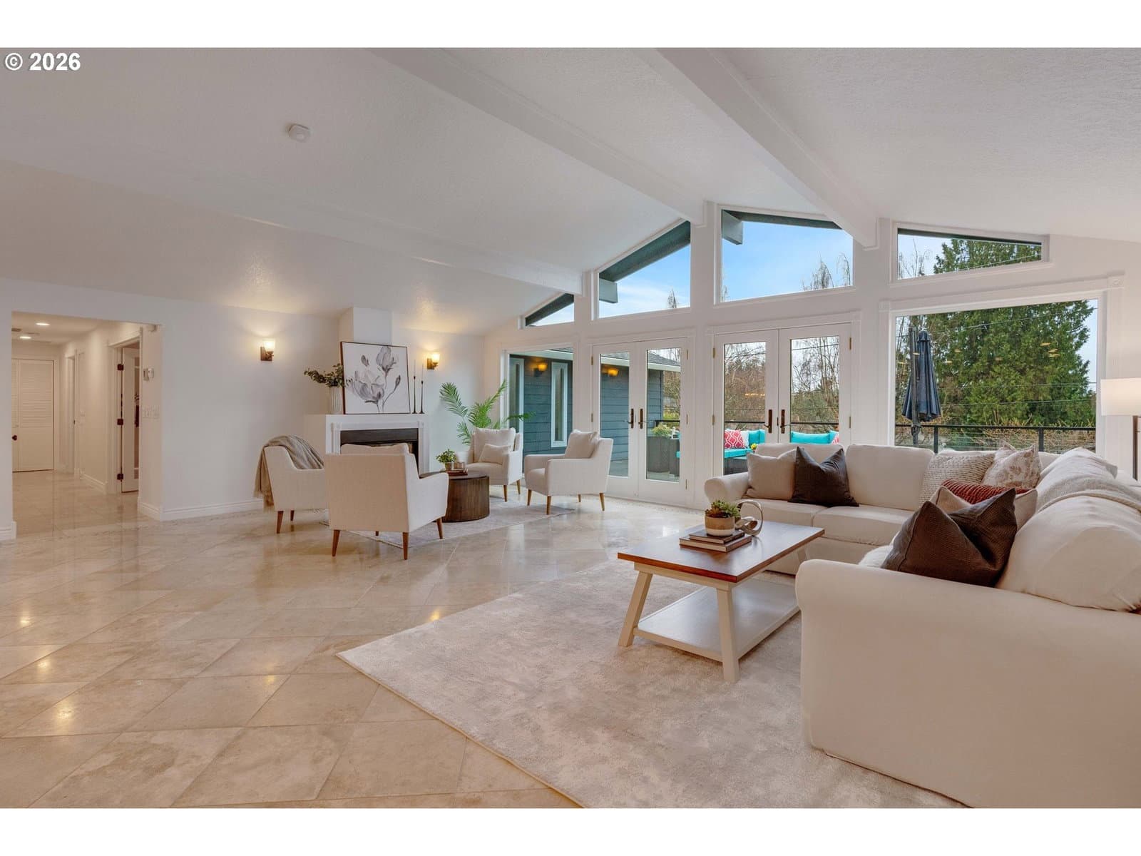 Remodeled Tigard home on large .38 acre lot. Three bedrooms, two bathrooms, plus an office all on one level. The home features a two-car garage plus an additional two-car covered carport, ample parking on the property, and a Tesla charging station. An owned 11.5 kW solar system supports energy-conscious living and affordable utilities. Thoughtfully updated and designed for both comfort and entertaining, this home blends modern efficiency with standout amenities. Recent upgrades include Hardi-plank siding and exterior paint, the roof was replaced in 2019, AC replaced in 2016, and an electric tankless water heater installed in 2022. Enjoy radiant floor heating with new boiler in 2025, complemented by updated windows, fresh interior paint, travertine flooring, and a well-appointed kitchen featuring granite countertops, stainless steel appliances, a new dishwasher, custom cabinetry, and generous storage. The kitchen flows seamlessly into the dining area, where custom built-in bar spaces include a sink, dishwasher, and wine cooler—ideal for hosting. The primary suite bathroom is a true retreat, complete with a built-in sauna, heated towel bar, and clawfoot soaking tub. Guests bath features a jetted tub with tile surround and towel warmer. Outdoor living is equally impressive. A large Trex deck overlooks the yard framed by cherry trees and Mt. Hood views, while the expansive, private backyard patio offers a swim spa and ample space for outdoor entertaining. Mature landscaping—including lilacs and roses along the retaining wall—creates a serene, garden-like setting perfect for gatherings or quiet evenings at home. Financing incentives available for rate buy down with preferred lender, call for information. Do not miss this well cared for home!