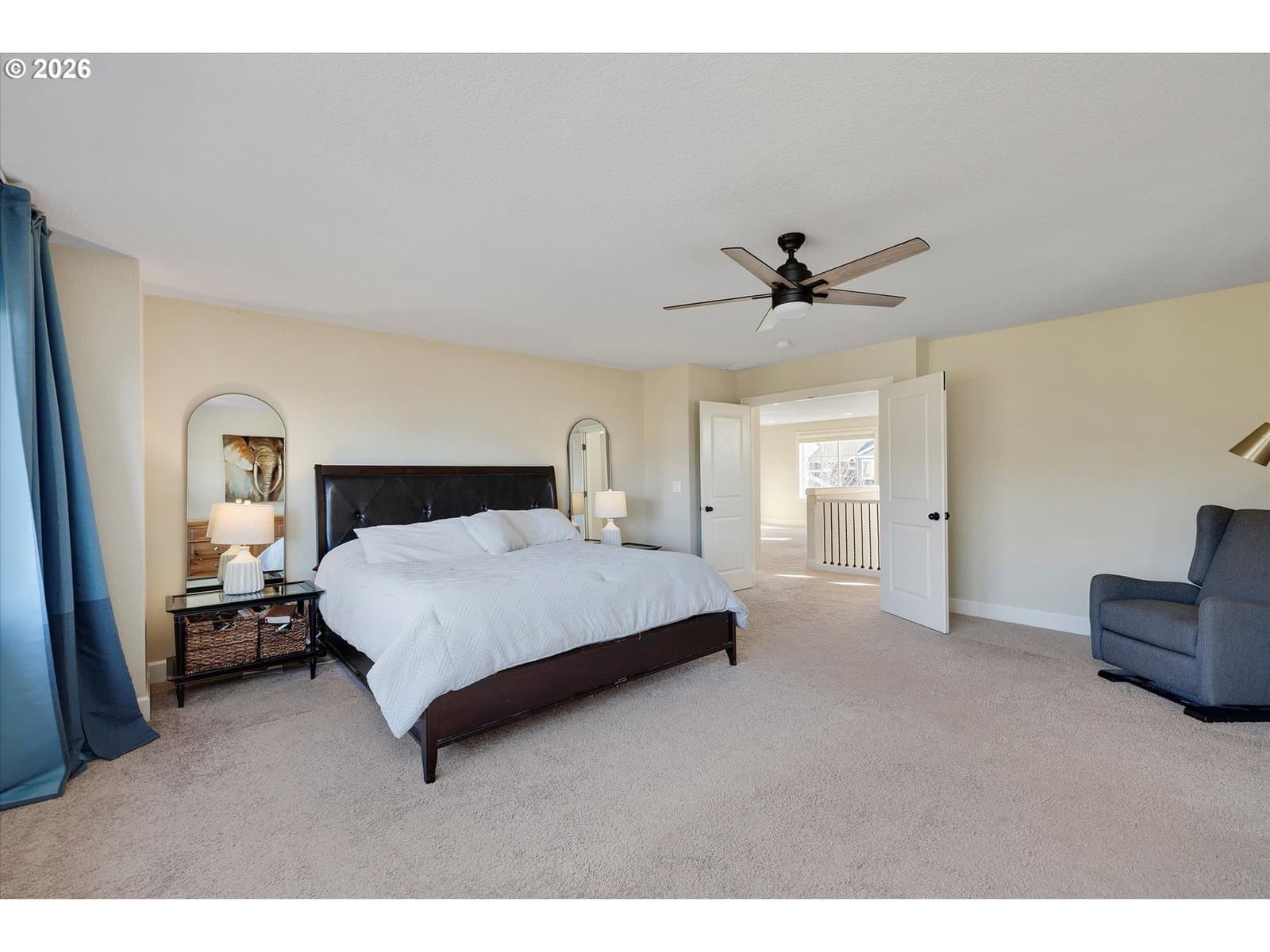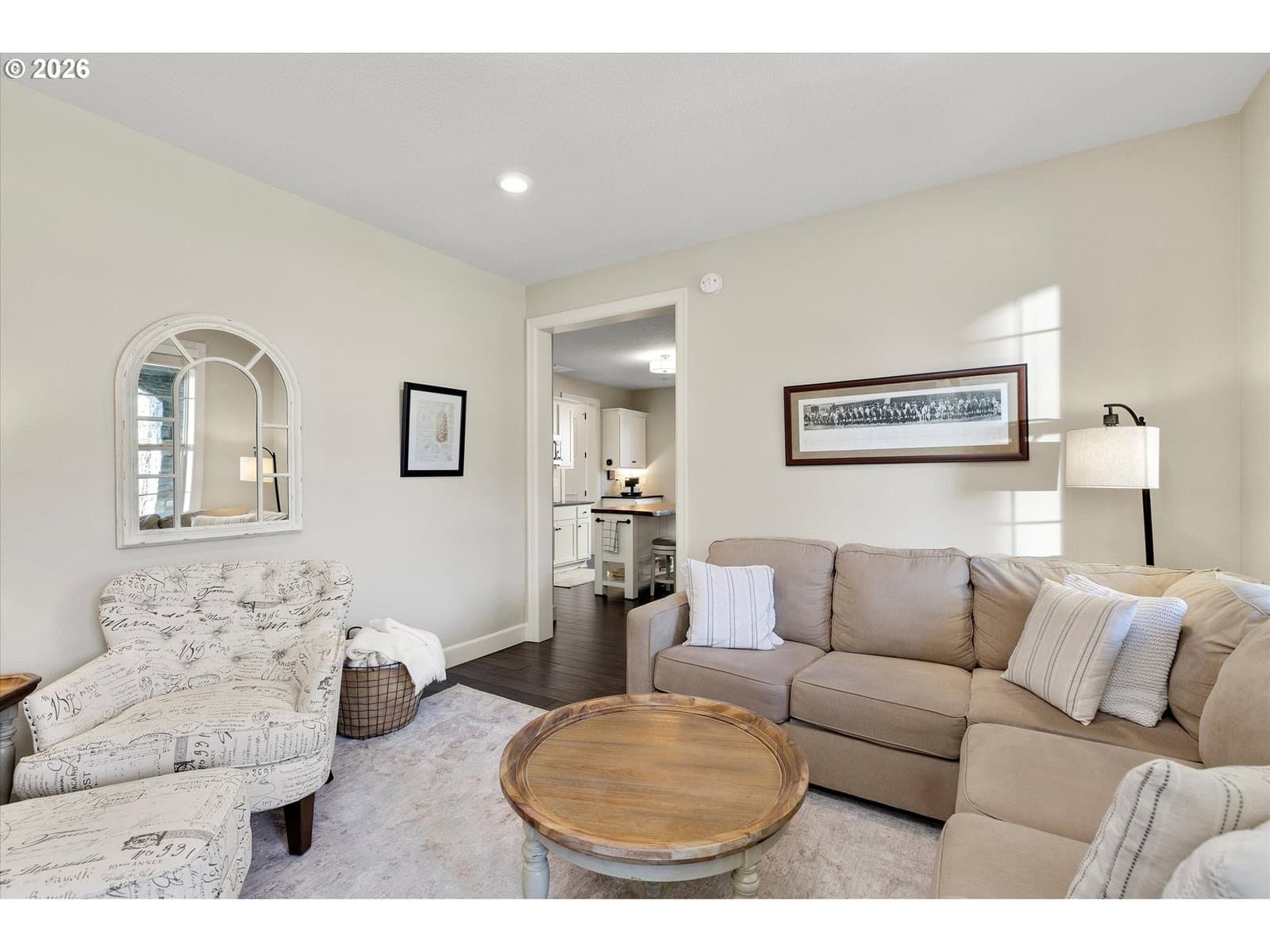 Built in 2015, this stunning 3,899 sq ft home offers a rare layout with an attached fully self contained 722 sq ft Multi-Generational Suite. This ground level suite is very private with its own entrance, dedicated garage, backyard with patio, pergola and sun-shade. Also includes 1 bedroom and on-suite bathroom, 15x13 spacious living room, stackable washer and dryer, generous kitchen with custom island and Brava oven & control over your own heat & AC, separate tankless water heater and engineered wood floors. This versatile space is ideal for multi-generational living, guests, college students, or add'l entertaining space for the home. The main home features 3176 sq ft, engineered wood floors on the main, EXPANSIVE kitchen/great-room concept, full of light, gas fireplace w/ built-ins and & 9 ft ceilings. Upstairs features 20X15 bonus loft room, primary suite with double sinks, & HUGE walk-in closet + an additional 3 bedrooms and 2 bathrooms (one Jack-n-Jill), large laundry room and plenty of storage thru-out the home. Located in a premier Happy Valley neighborhood with territorial backyard and Mt Hood view from upstairs & multi-gen suite front porch. Private HOA Park directly behind home. Enjoy the proximity to New Seasons, restaurants, trails, nature & 205....A truly one-of-a-kind opportunity offering space, privacy, and flexibility in an unbeatable location. All appliances are included.