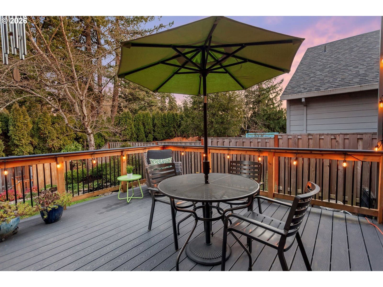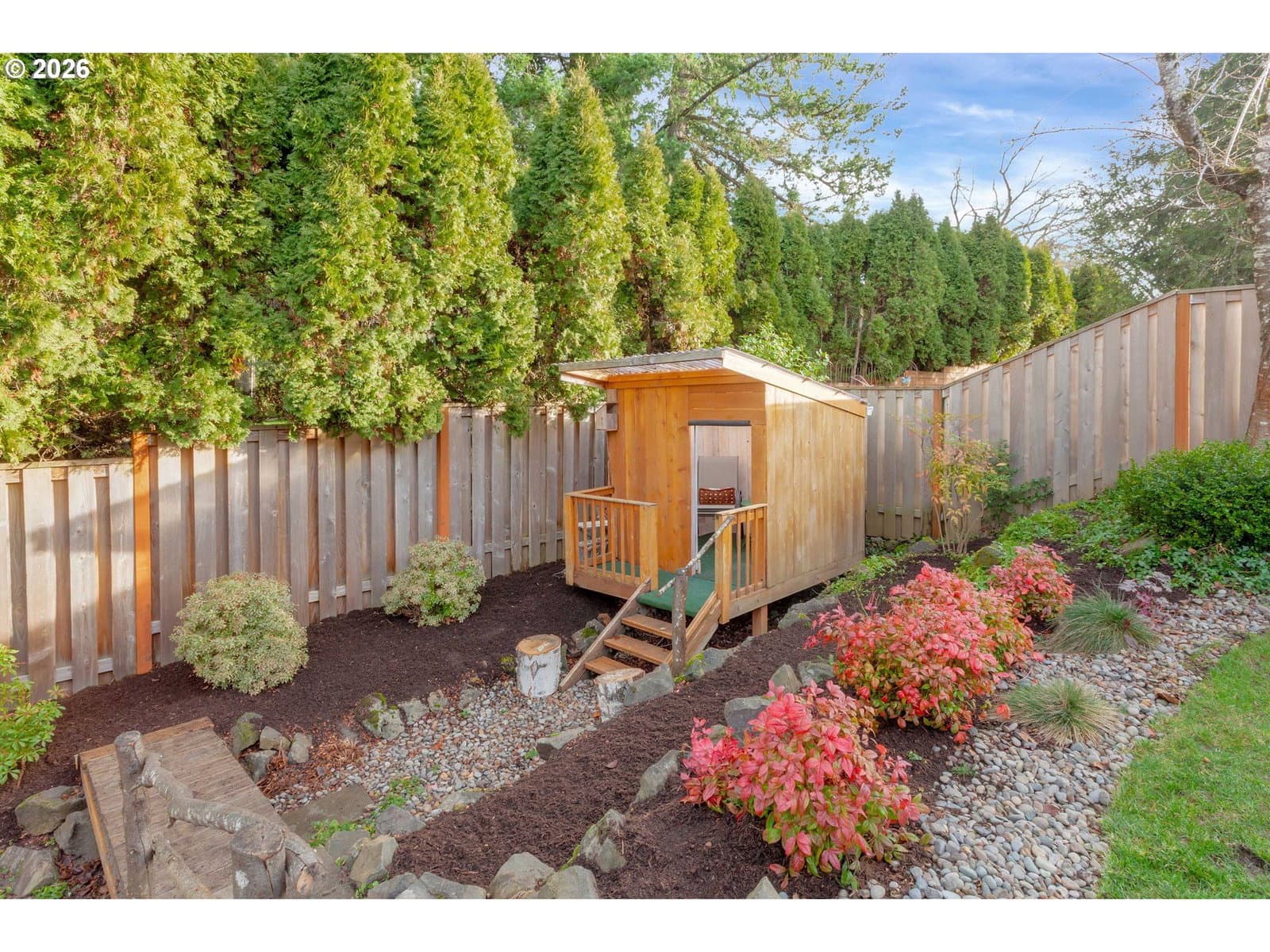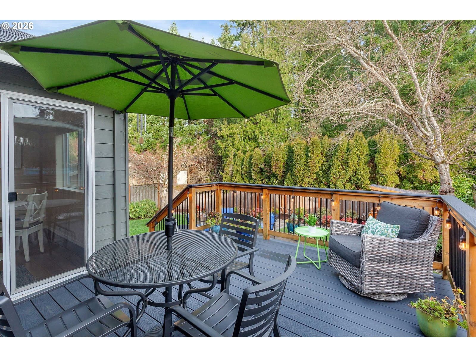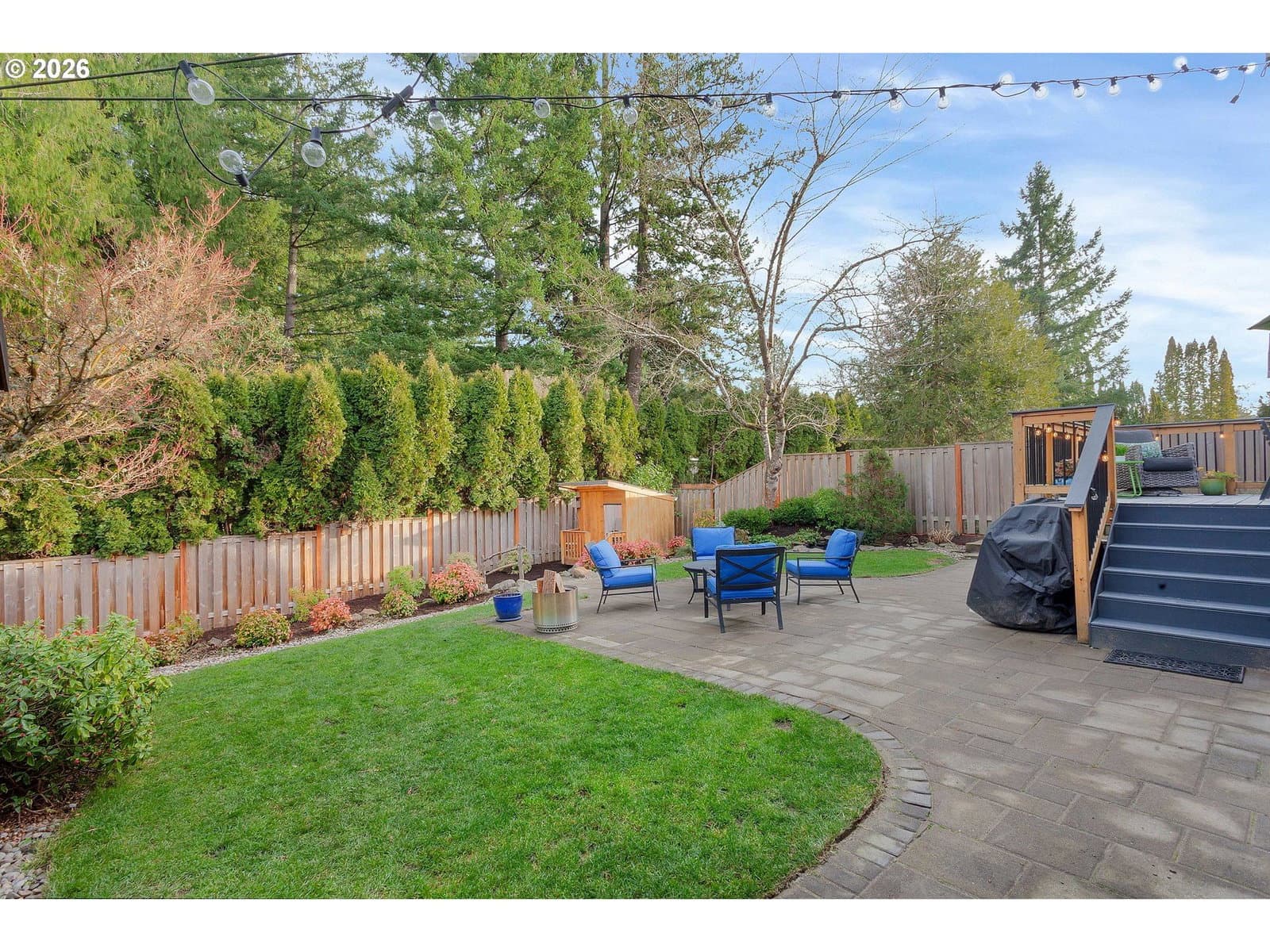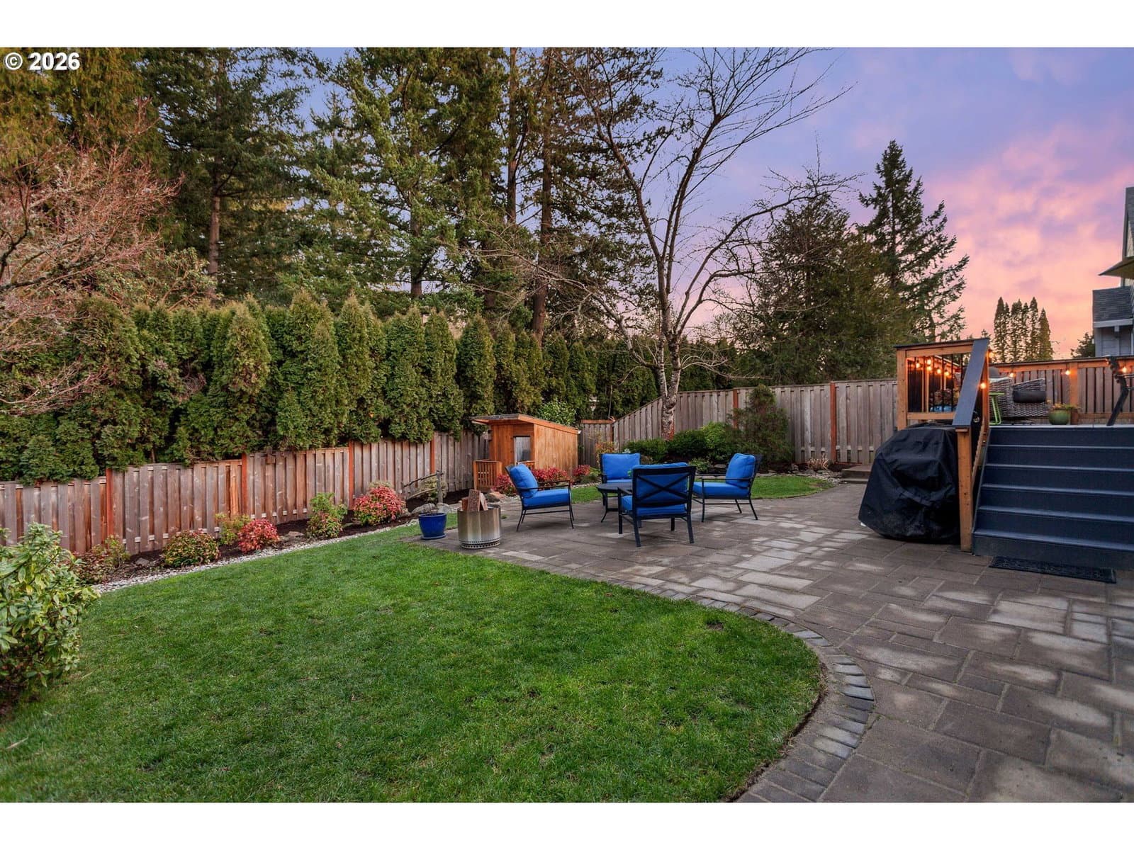 Located in the heart of Woodhaven, this beautifully maintained home offers an exceptional blend of location, updates, and outdoor living—just steps to Sherwood Middle School, neighborhood parks, trails, and Old Town Sherwood. Pre-inspected with repairs completed, the home features meaningful upgrades throughout, including a newer roof, HVAC system, water heater, driveway, deck, and an expansive paver patio, providing peace of mind and actual move-in readiness. The main level includes carpeted formal living and dining rooms, while laminate flooring flows throughout the remainder of the space. The remodeled kitchen showcases quartz countertops, stainless steel appliances, a seating bar, pantry, and cozy nook, opening to the family room with a welcoming fireplace—perfect for everyday living and entertaining. Upstairs offers three bedrooms, including a spacious primary suite with vaulted ceilings and an updated ensuite bath with tub and shower. A Jack-and-Jill bathroom serves the additional bedrooms, and fresh interior paint enhances the home’s clean, polished feel. The backyard is truly a standout—a backyard to die for. Set on a larger lot, it offers exceptional privacy and space, featuring full fencing, irrigation front and back, a newer deck, an expansive 18x25 paver patio, and a storage shed. This outdoor setting, rarely found in the neighborhood, is ideal for entertaining, relaxing, or simply enjoying privacy. This is a rare Woodhaven opportunity combining pride of ownership, thoughtful updates, and one of Sherwood’s most desirable locations.