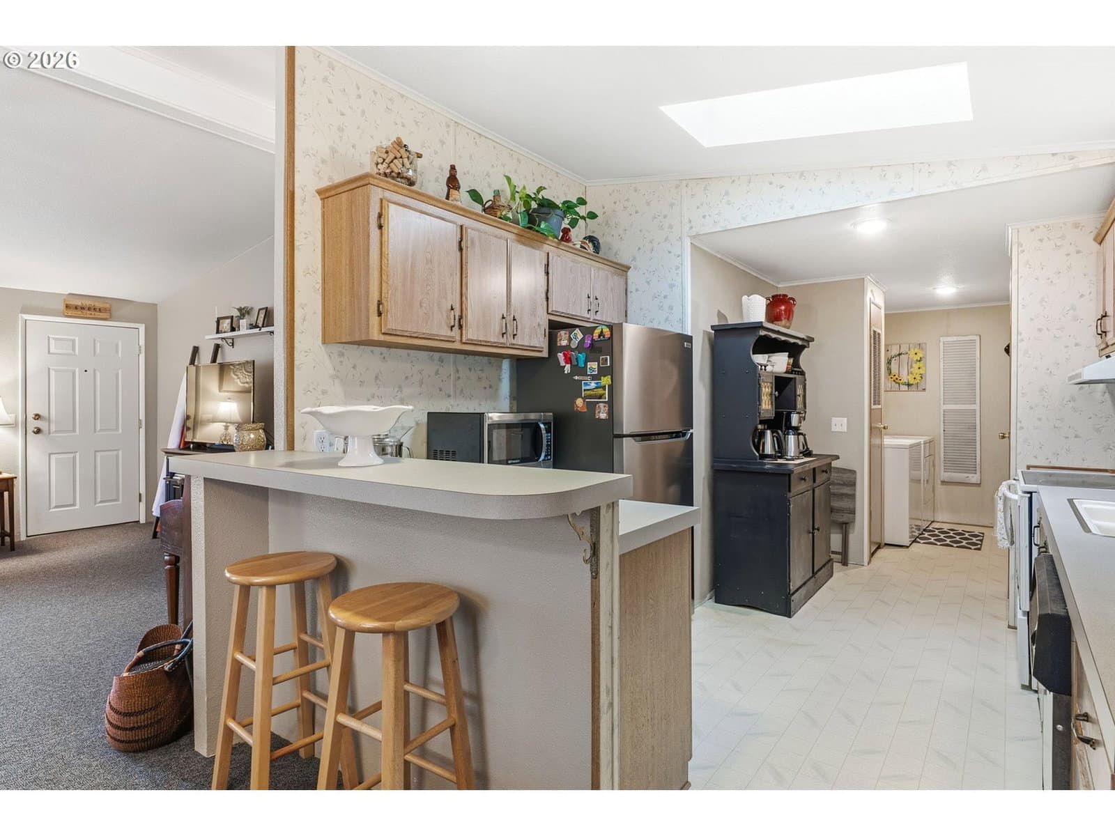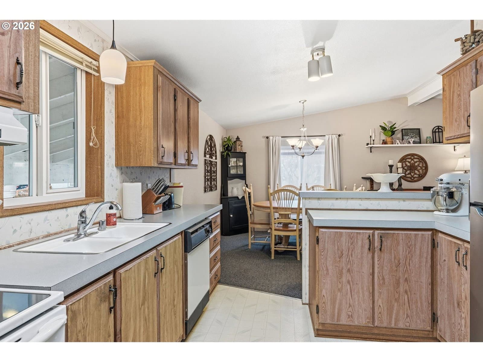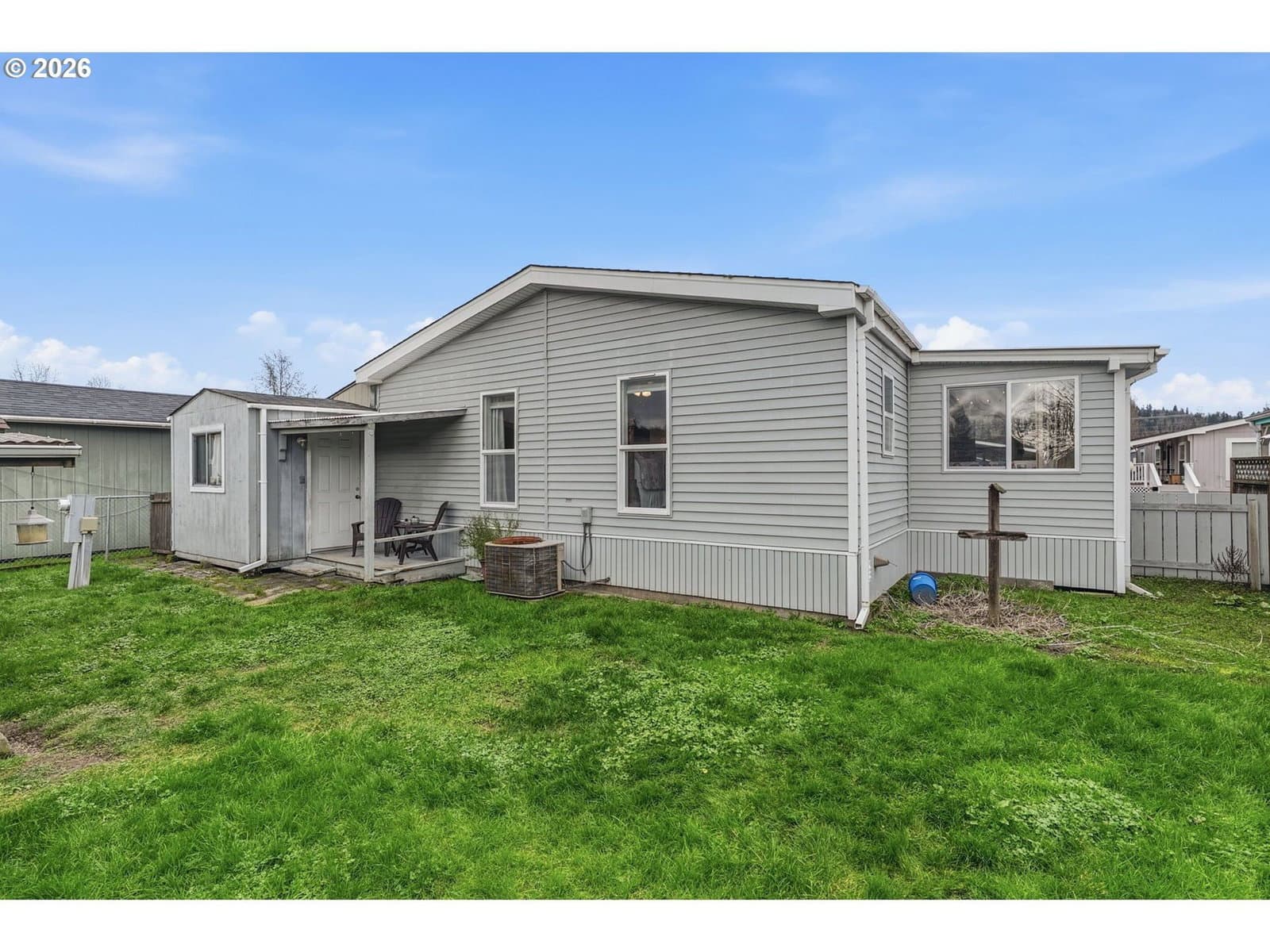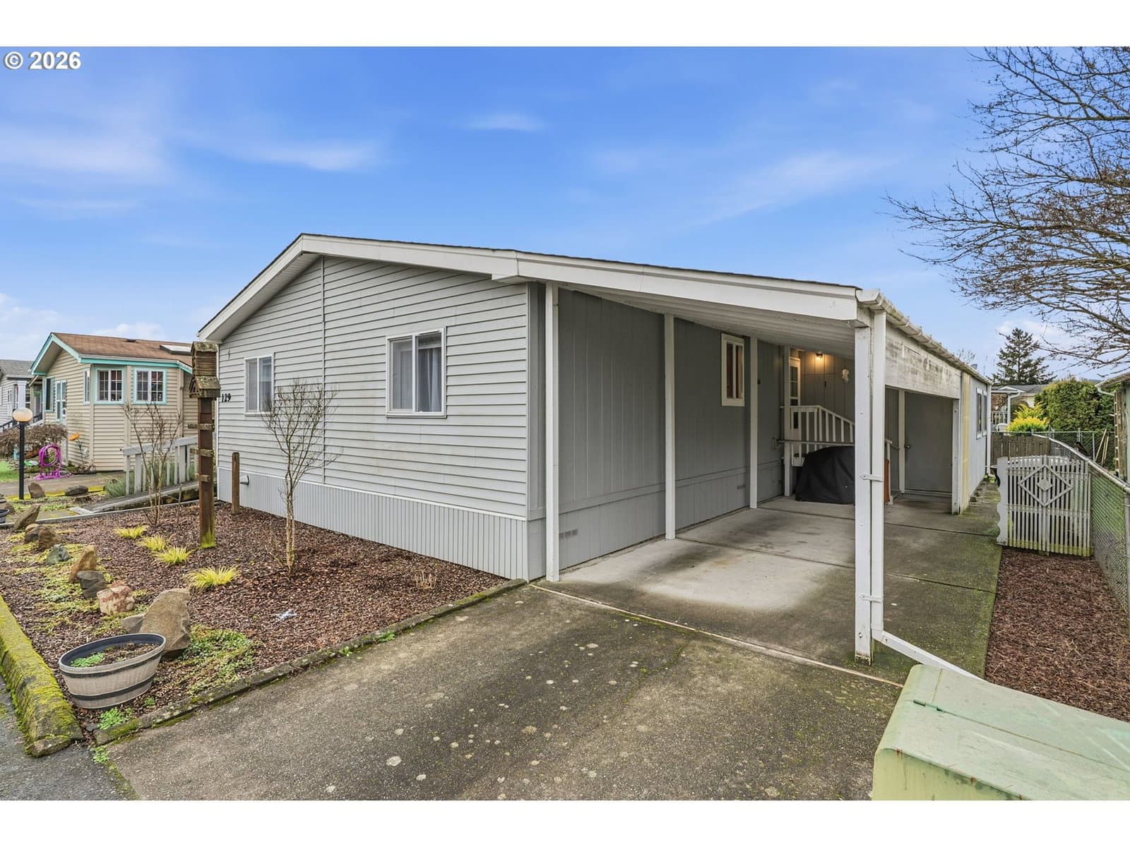 Cute open-concept home located in the desirable Heron Pointe Park in West Longview, ready for its next owner. This 2-bedroom, 2-bath home offers spacious living areas and a bright sunroom, perfect for relaxing year-round! The primary bedroom features a walk-in closet and jetted tub with a newer toilet. The kitchen includes a skylight and newer refrigerator. Additional highlights include ramp access, carport parking, a large storage room, covered back deck, and an additional garden shed. Offered at the best price in the park. Community amenities include playgrounds, basketball court, common recreation room, and neighborhood events.
