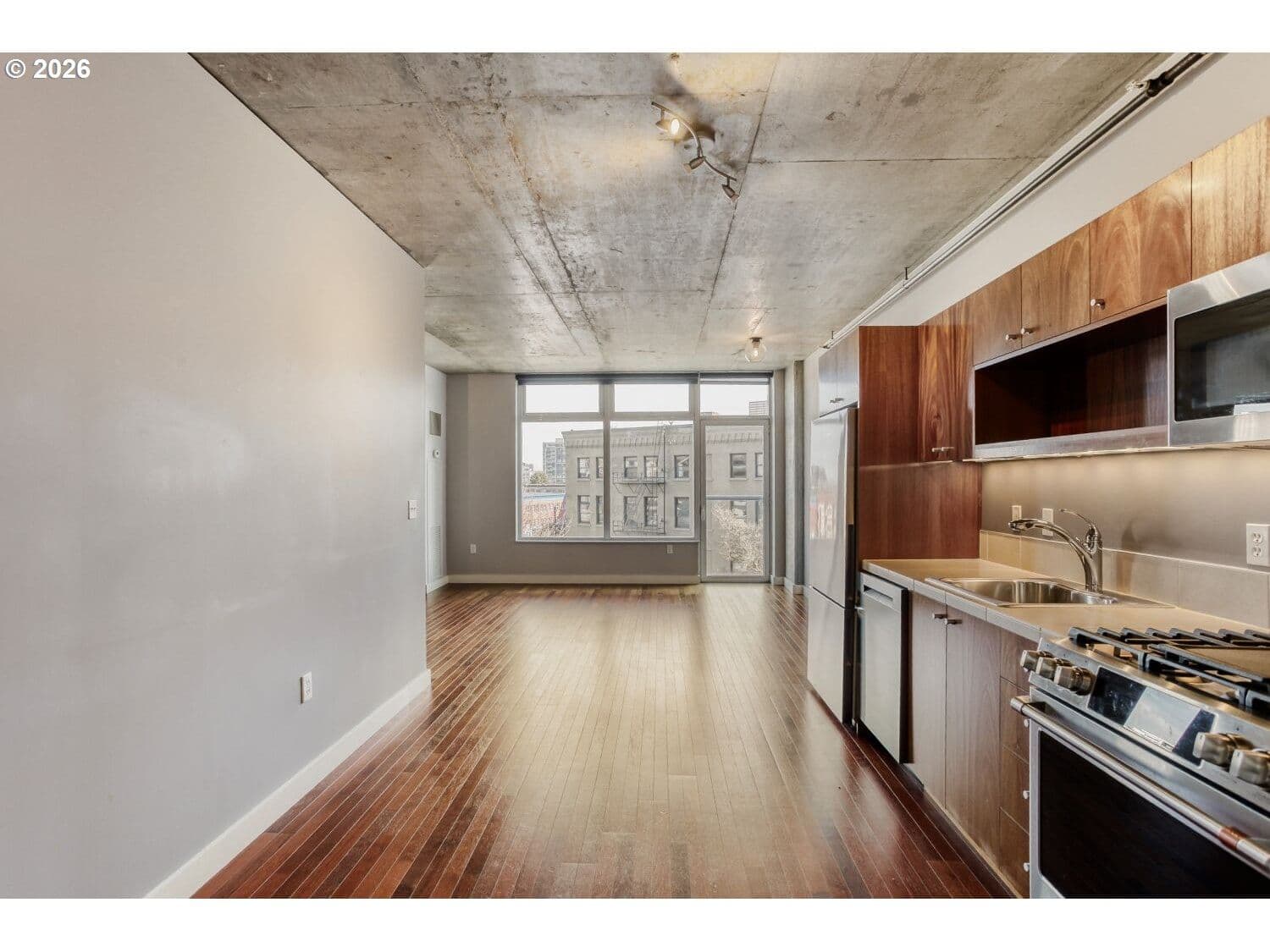 Like-new condo located in desirable Goose Hollow with secure deeded parking! The HOA is well funded, the dues are affordable, and they cover everything besides electric and internet. This unit features Brazilian cherry hardwood floors, high end appliances, including a brand new dishwasher and unused oven, ample storage, a walk-in closet with Elfa shelving system, and an open layout to make your own. Large windows offer city views and abundant natural light. The location also showcases a 99 Walk Score! You are right across from Providence Park, blocks away from trendy NW 23rd Ave. and downtown Portland, and have easy access to Hwy 26. Ask your agent about financing options available with rates below market rate through preferred lender!