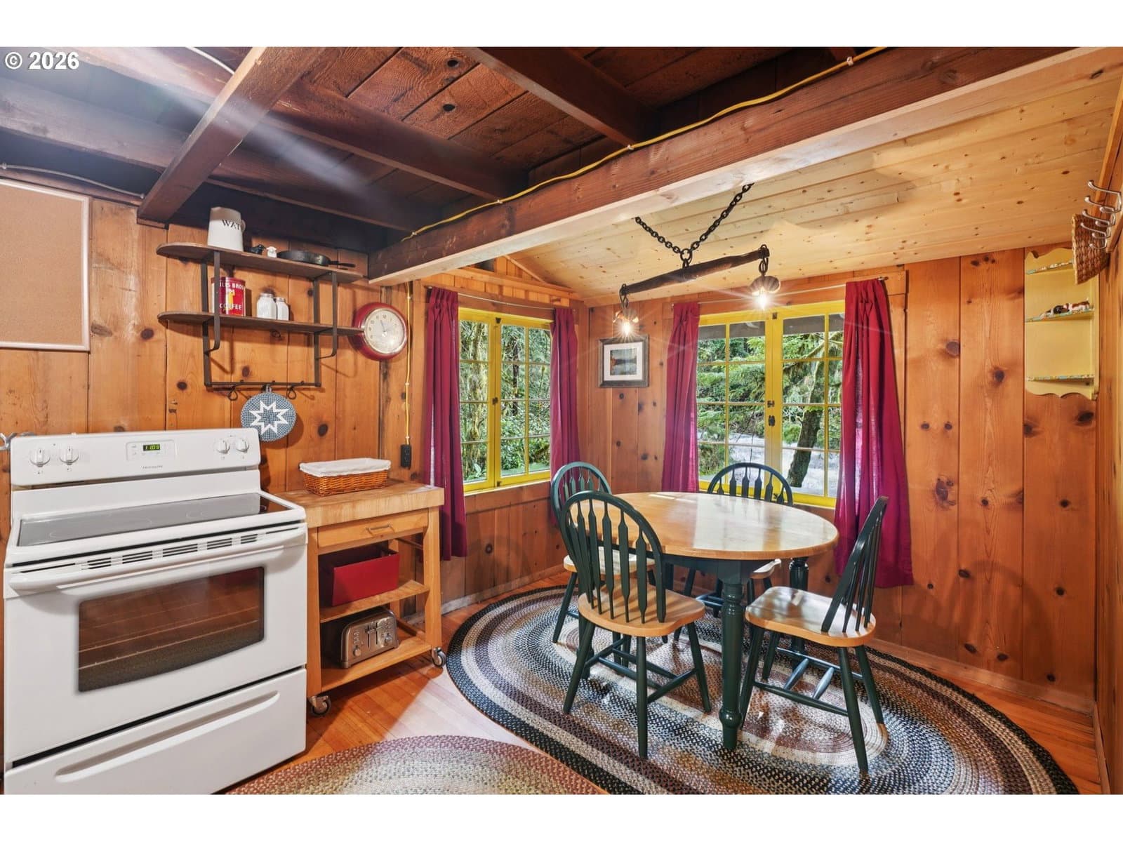 Step back in time with this enchanting vintage cabin nestled along the serene banks of Camp Creek in the heart of Rhododendron, Oregon. This cozy 2-bedroom, 1-bathroom retreat captures the authentic spirit of classic Mt. Hood living, offering a rare opportunity to own a piece of mountain history on forest service owned land. Inside, soaring vaulted ceilings and warm wood finishes create an inviting atmosphere that feels both rustic and timeless. A beautiful brick fireplace anchors the living space, perfect for crackling fires after a day on the slopes. The main bedroom and an elevated loft sleeping area provide comfortable accommodations, while original log handrails and charming paned windows frame the lush forest surroundings, bringing the outdoors effortlessly inside. Step outside to a covered porch entry and a creek side deck where the gentle sounds of Camp Creek set the soundtrack for your mountain escape. An outbuilding provides convenient wood storage, and ample parking accommodates guests with ease. Location is everything, and this cabin delivers. Devils Canyon Falls is just moments away for hiking adventures, while Government Camp and Mt Hood slopes are only a short drive up the mountain. Hoodland Thriftway in nearby Welches handles all your grocery needs while there's also an assortment of delicious local restaurants for all your dining needs. Sold fully furnished and situated on leased land within the Mt. Hood National Forest, this turnkey retreat is ready for you to start making memories immediately. Don't miss this vintage Camp Creek charmer!