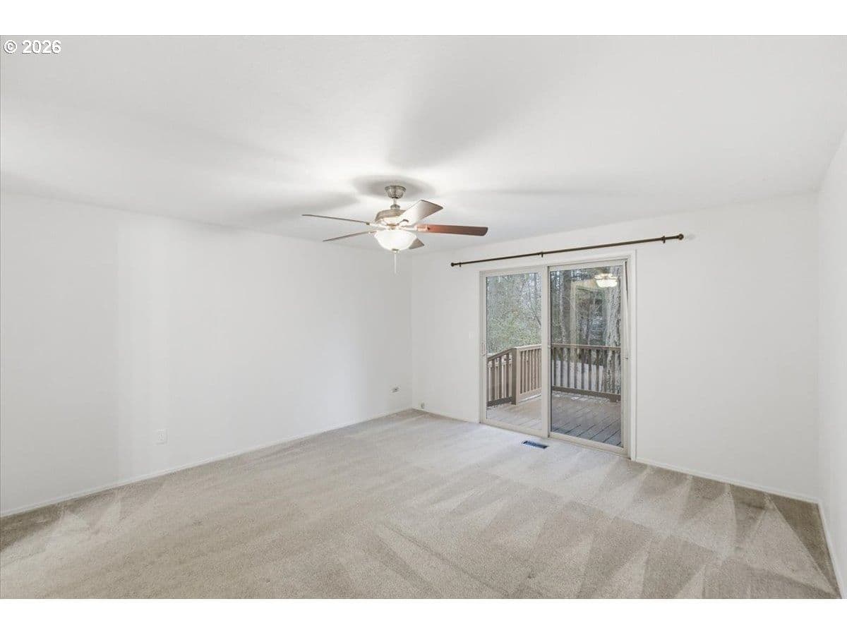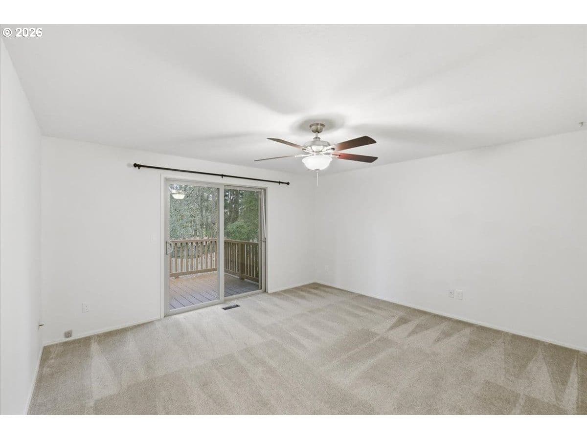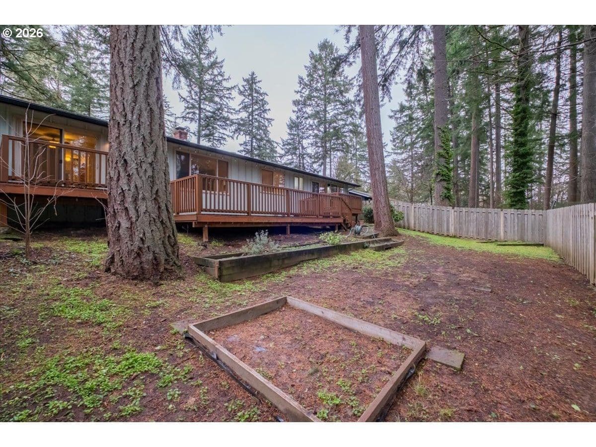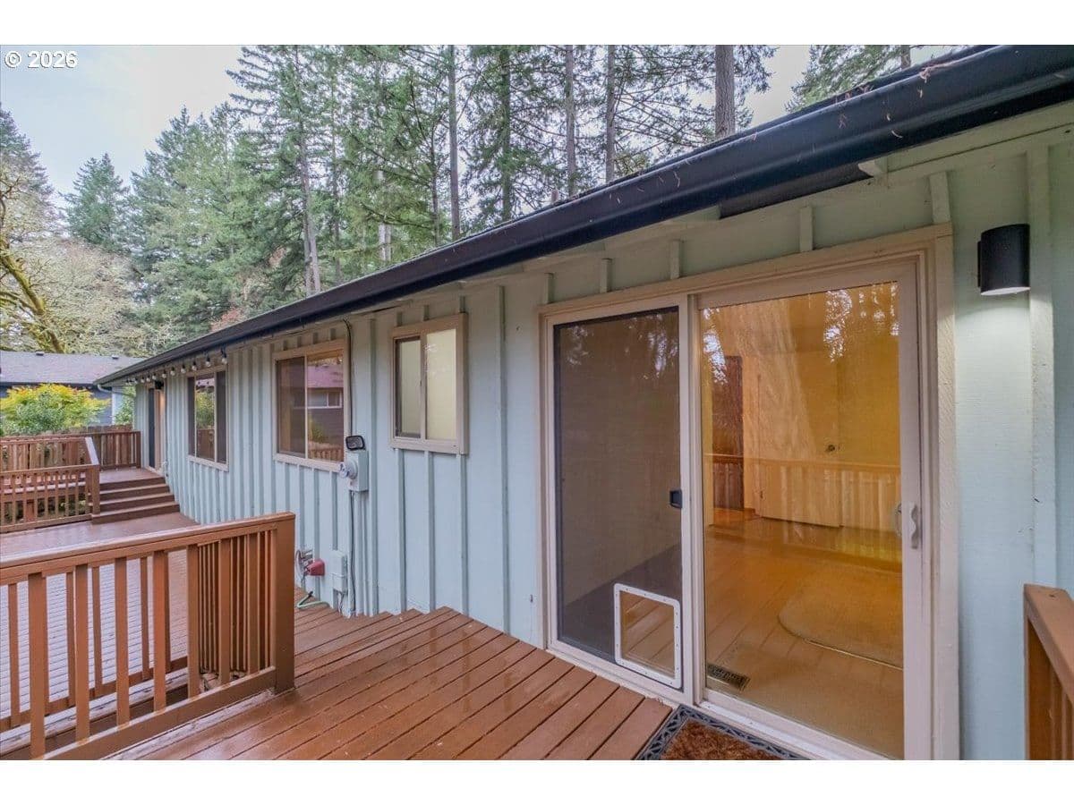 Tucked away in a private, tree-lined setting, this Northwest Corvallis home offers comfort, functionality, and an unbeatable location. Less than a 10-minute drive to Oregon State University and area schools, and under 5 minutes to shopping, grocery stores, and restaurants. A welcoming entry features a skylight and vaulted ceiling, with hardwood and carpeted flooring and ceiling fans throughout. The living room is warm and inviting with a cozy fireplace, marble hearth, and modern floating shelf. The generously sized kitchen opens through an arched doorway to the formal dining area, ideal for everyday living and entertaining. The owner’s bedroom includes exterior access to the new in 2024 Trex deck—perfect for morning coffee with peaceful forest views—and an attached newly remodeled bathroom with a modern walk-in shower. The family room also offers separate exterior access to the deck, providing excellent separation of space for students, visiting family, or guests. A tucked-away office area adds flexibility for work or study. The large two-car garage features built-in shelving, sink, and laundry area. Enjoy the fully fenced yard with a deck spanning the entire back of the home—ideal for entertaining and plenty of room for furry friends to play. Easy access to the community pool.