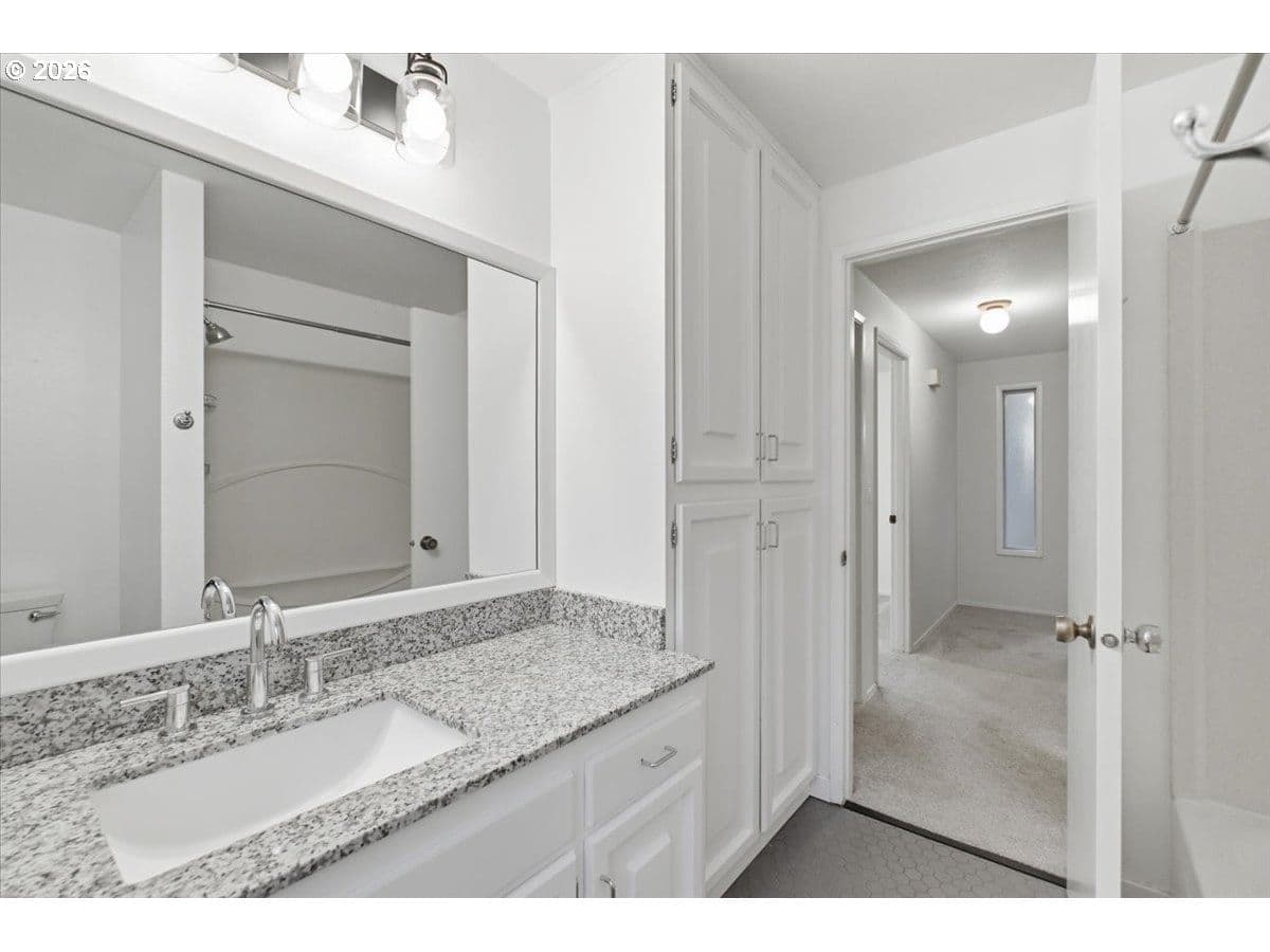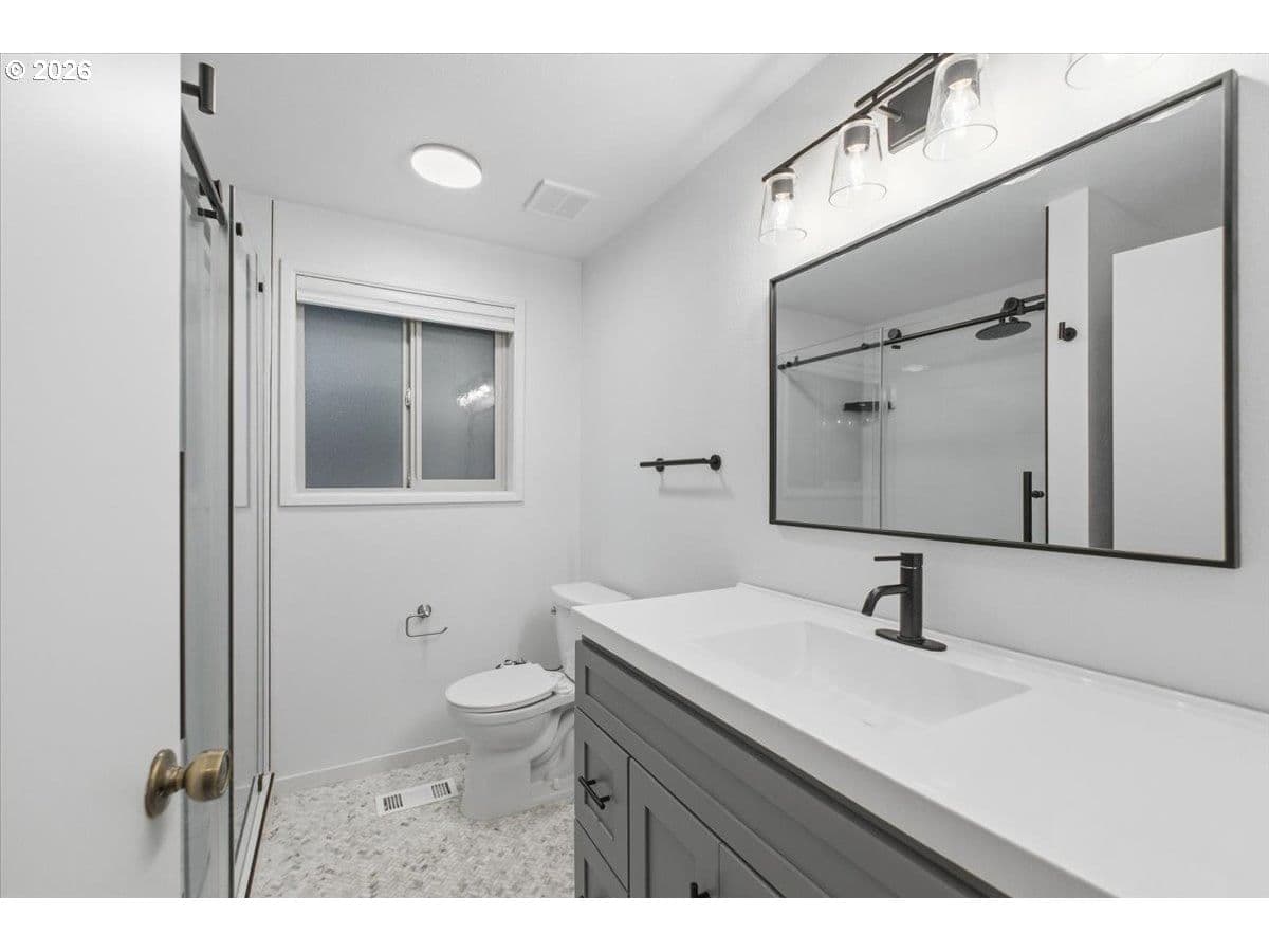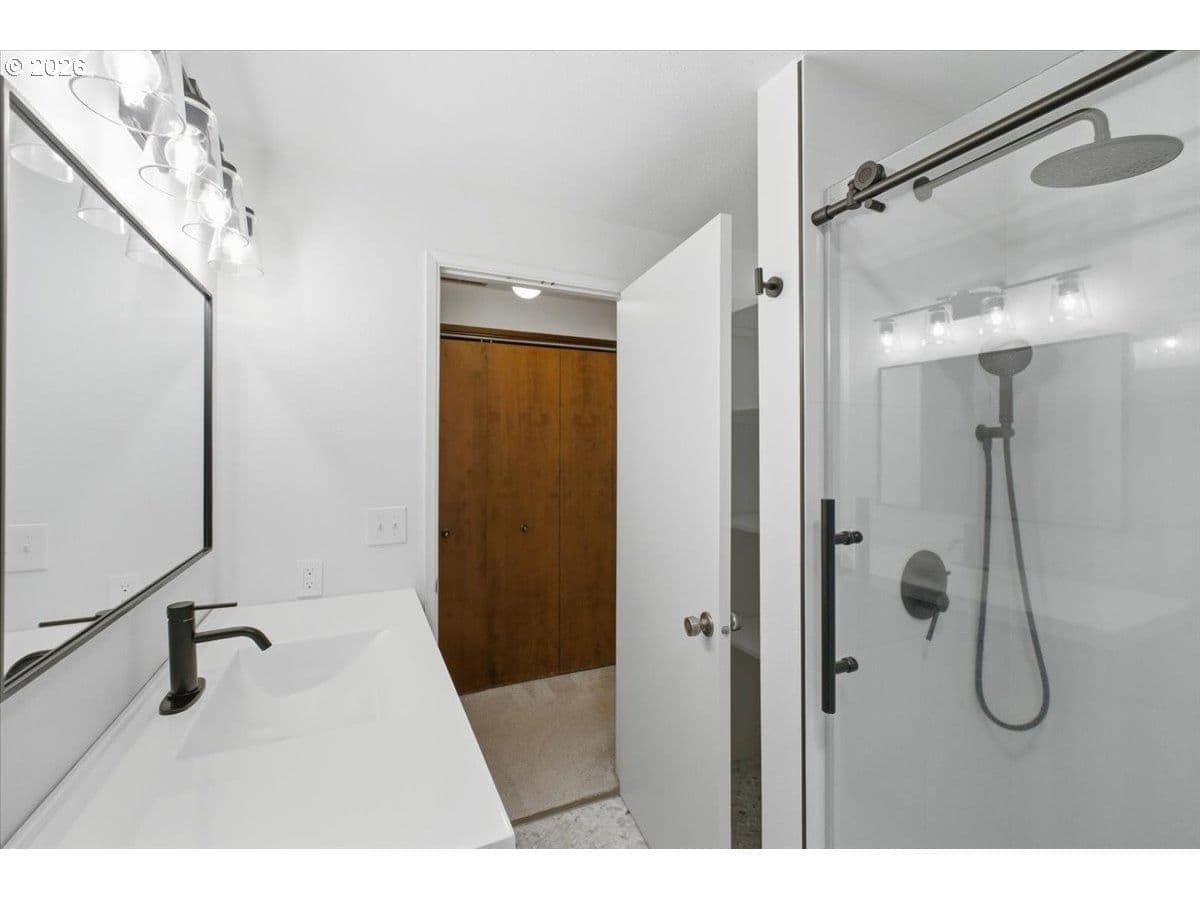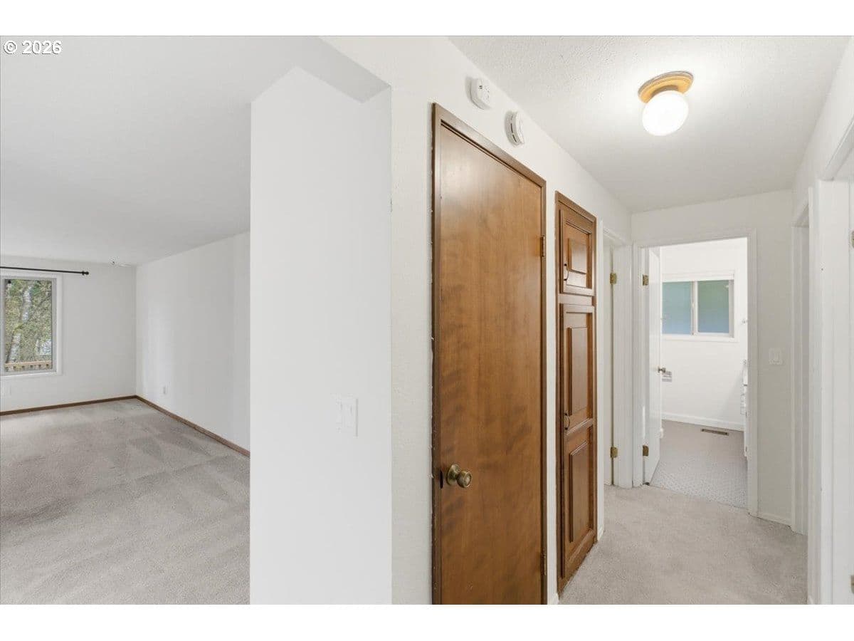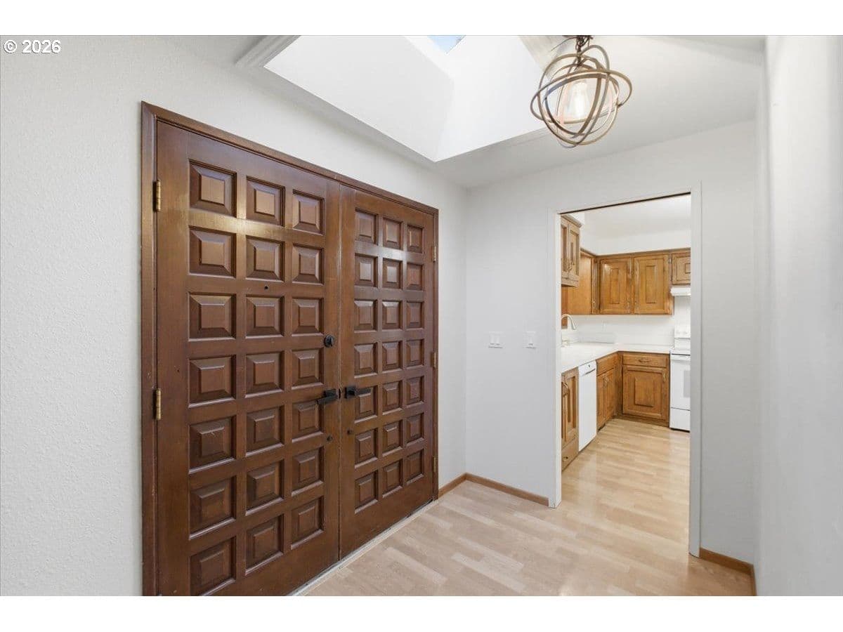 Tucked away in a private, tree-lined setting, this Northwest Corvallis home offers comfort, functionality, and an unbeatable location. Less than a 10-minute drive to Oregon State University and area schools, and under 5 minutes to shopping, grocery stores, and restaurants. A welcoming entry features a skylight and vaulted ceiling, with hardwood and carpeted flooring and ceiling fans throughout. The living room is warm and inviting with a cozy fireplace, marble hearth, and modern floating shelf. The generously sized kitchen opens through an arched doorway to the formal dining area, ideal for everyday living and entertaining. The owner’s bedroom includes exterior access to the new in 2024 Trex deck—perfect for morning coffee with peaceful forest views—and an attached newly remodeled bathroom with a modern walk-in shower. The family room also offers separate exterior access to the deck, providing excellent separation of space for students, visiting family, or guests. A tucked-away office area adds flexibility for work or study. The large two-car garage features built-in shelving, sink, and laundry area. Enjoy the fully fenced yard with a deck spanning the entire back of the home—ideal for entertaining and plenty of room for furry friends to play. Easy access to the community pool.