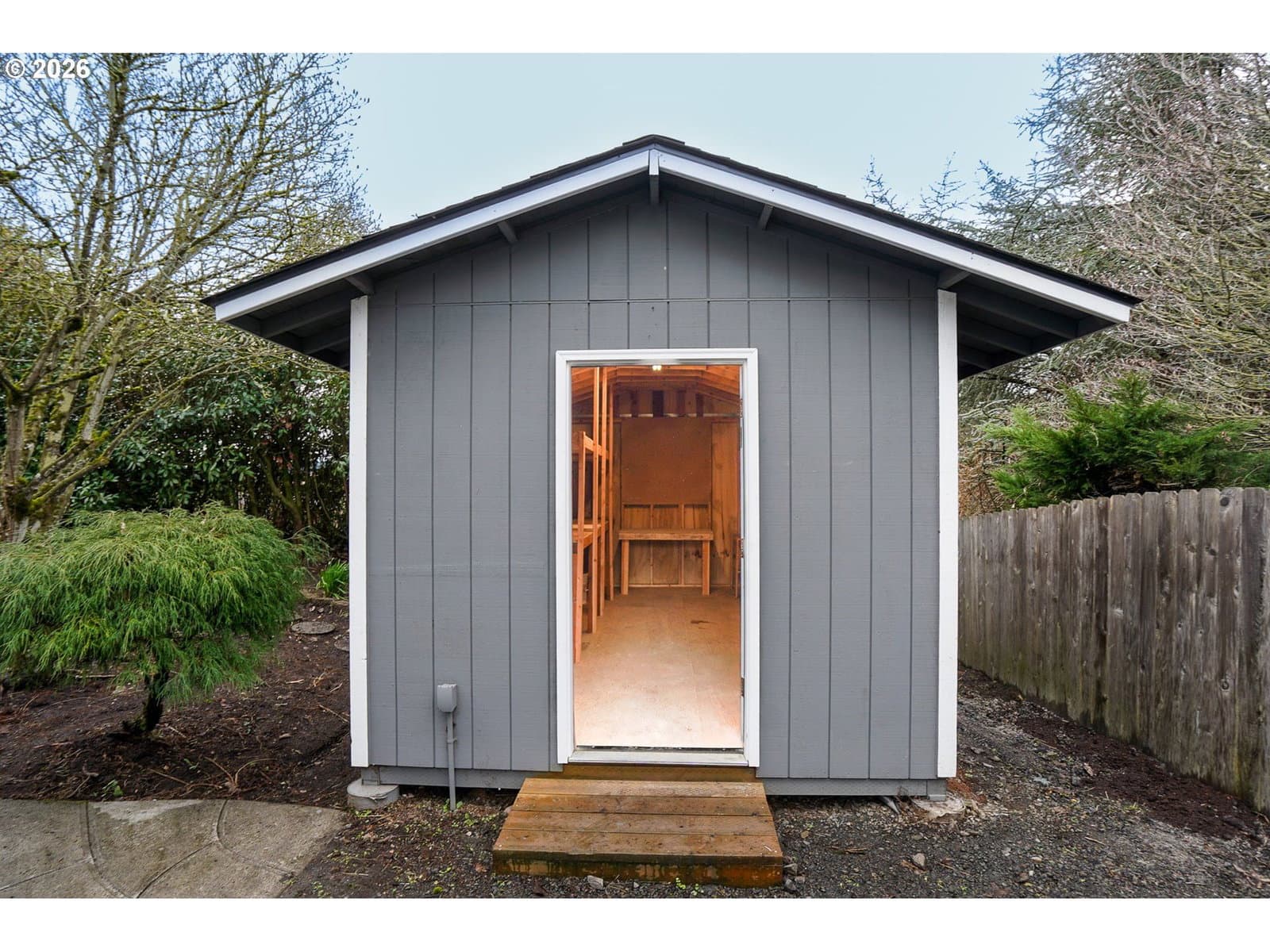 Charming 1961 mid-century modern home in a prime Kalama location, directly across from downtown and steps to Toteff Park. This 3-bedroom, 2.1-bath home features original floors, cabinetry, and counters in excellent condition, complemented by thoughtful updates. Light-filled living and dining spaces include a gas fireplace and large windows for comfortable everyday living.All bedrooms are on the main level with generous closets, including a flexible bedroom/office with an ensuite bath. A unique front patio living area adds functional outdoor space just off the kitchen. The heated, finished garage conversion offers versatile flex space and is zoned commercial, with potential to convert back to a garage.Outstanding parking includes two driveways with space for up to eight vehicles, plus room for RV, boat, or trailer parking and ADA-friendly main-level access. Fully fenced yard provides privacy. New roof in 2025. Pre-listing home, sewer, and radon inspections completed; details available. Walkable to downtown, parks, marina, and McMenamins, with easy I-5 access and approx. 30 minutes to Portland.
