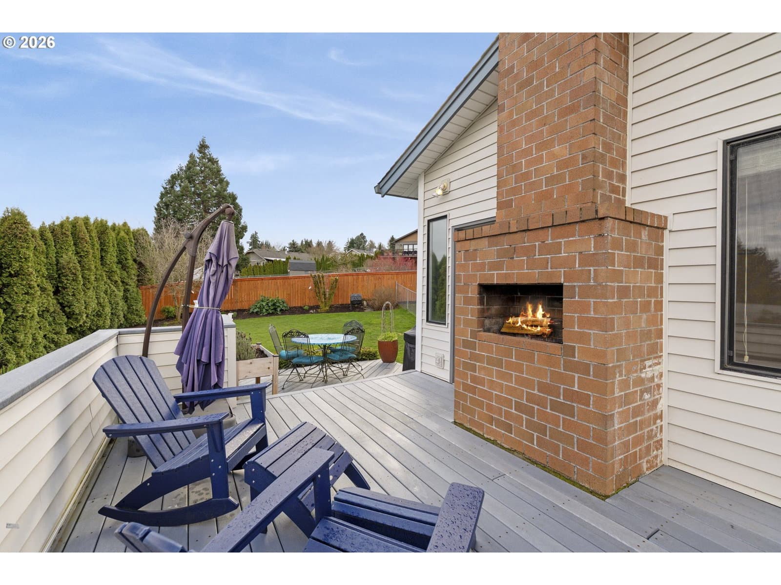 Take in breathtaking sunrises and let MOUNT VISTA live up to its name with STUNNING VIEWS of MT. ST. HELENS, MT. HOOD, and MT. ADAMS! This beautifully maintained home sits on an EXTRA LARGE LOT (.28 ACRE) featuring immaculate landscaping and a show-stopping magnolia tree that neighbors regularly stop to admire. Located just three lots from the WSU CAMPUS, enjoy over 5 miles of nearby fields, TRAILS, and open space—perfect for walking, running, and outdoor recreation. Inside, the home offers thoughtful upgrades and quality finishes throughout. Maple HARDWOOD FLOORS throughout the entire home except for ceramic tile in bathrooms & laundry! The kitchen features granite countertops, custom wood cabinetry, hardwood floors, an eating bar and nook, plus newer stainless steel refrigerator and dishwasher. Comfort and efficiency are enhanced with a gas furnace, heat pump with A/C, tankless hot water heater, gas cooktop, fireplace insert, and heat-reflecting coating on skylights and south/east-facing windows. Both upstairs bathrooms have been beautifully remodeled, including a primary bath with updated tub and shower, and a secondary bath with walk-in shower and granite countertop. Outdoor living shines with two-level composite decking, a built-in fireplace, privacy fencing, and a hot tub pad with 220 power. The private veranda off the primary suite offers the perfect place to enjoy territorial views, Mt. St. Helens, and Fourth of July fireworks! Additional features include exceptional custom cabinetry by NW Garage Storage in the garage and laundry room, plus a storage shed. **Ideally located just MINUTES from Legacy Salmon Creek Hospital, Trader Joe’s, shopping, restaurants, parks, and easy access to I-5 and I-205. Situated in a highly desirable neighborhood known for its beautiful homes and welcoming community. Don't miss out on this one-of-a-kind home!