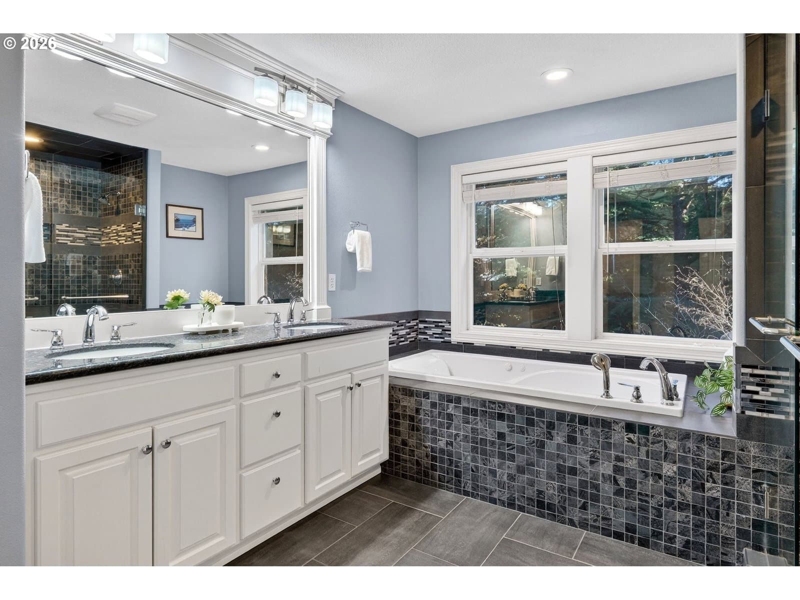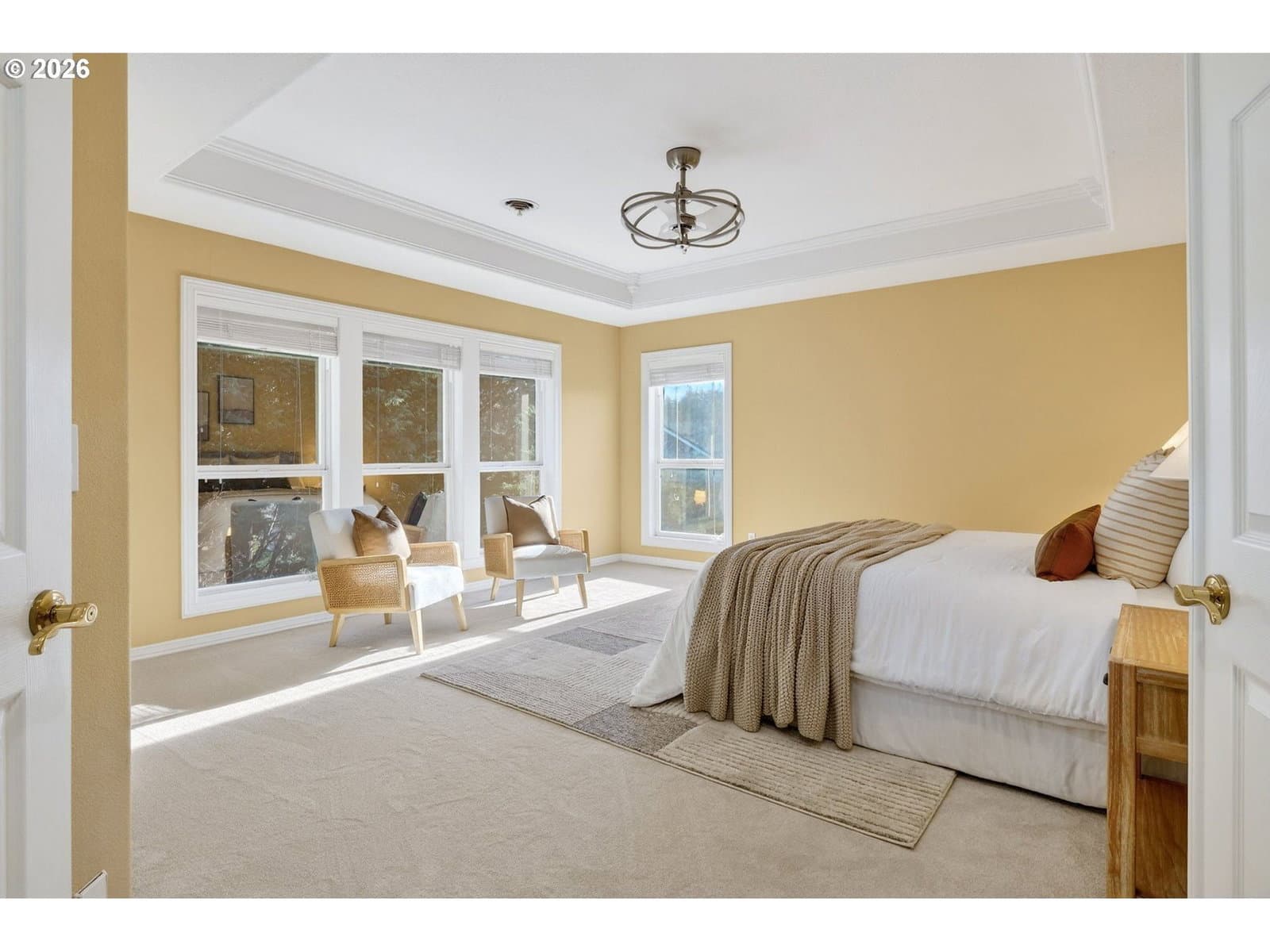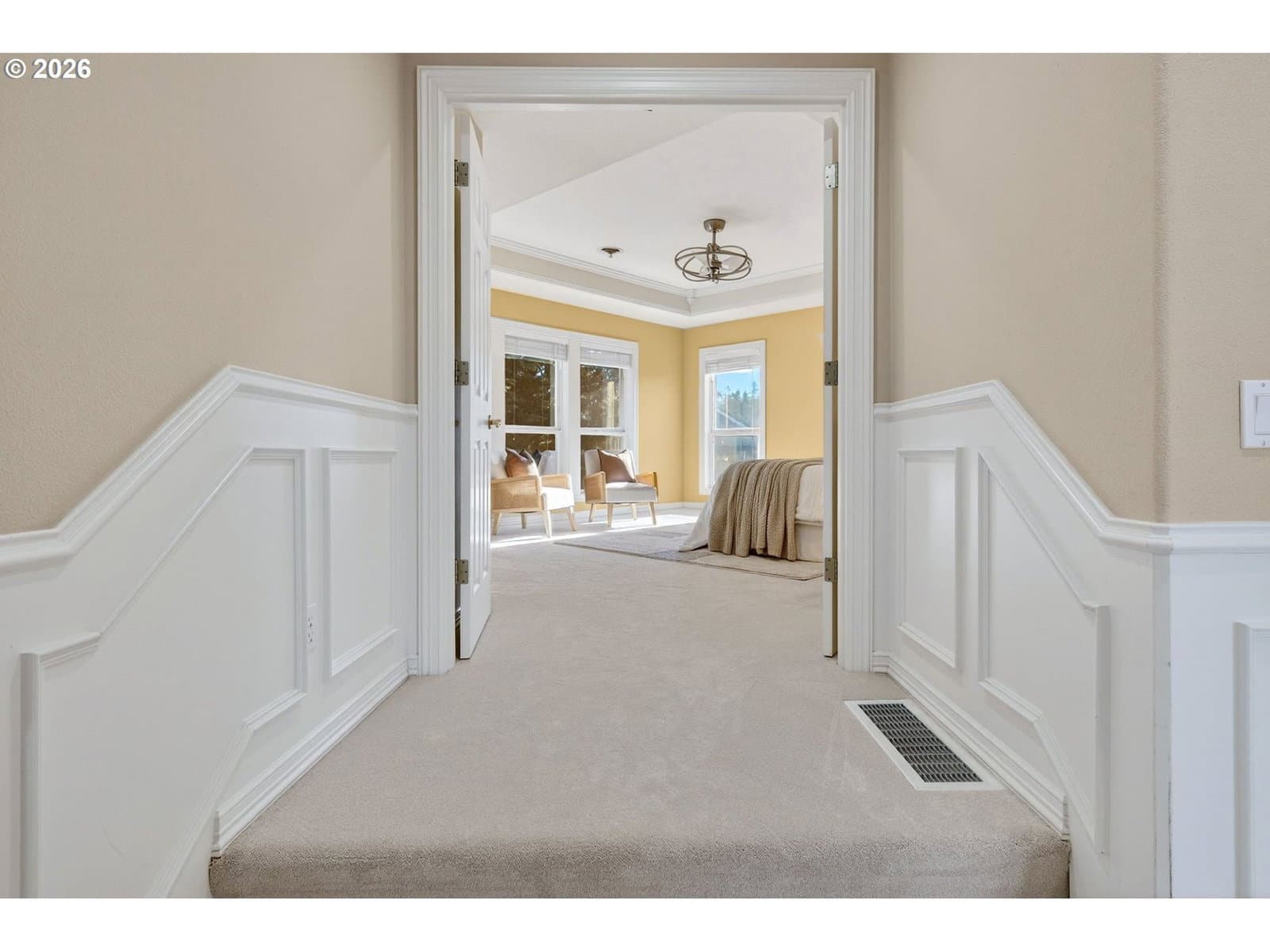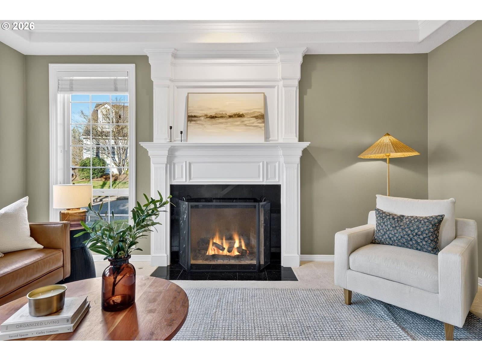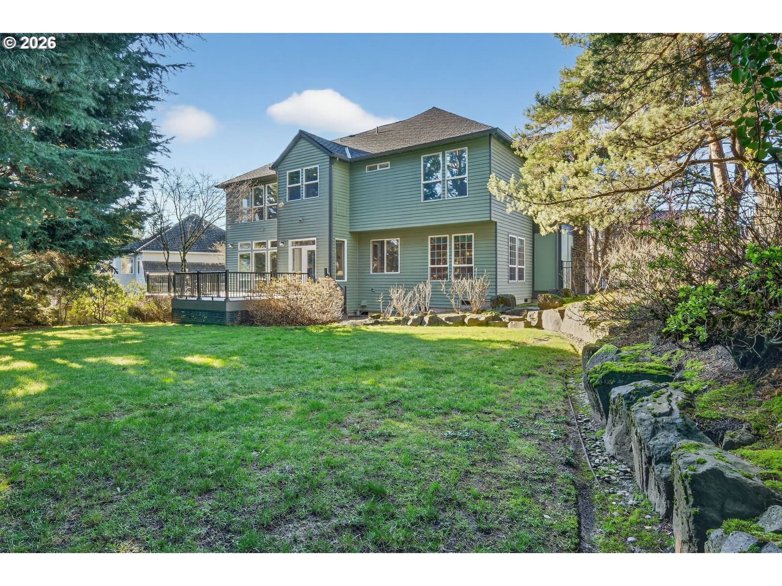 *OPEN FRIDAY 2/6 FROM 4-6 & SATURDAY 2/7 FROM 2-4* Beautifully updated classic traditional featuring high ceilings on both levels, crown molding, and brand new carpet throughout. The main level offers a lofted foyer with new stair rail, wainscoting, a private den with wood paneling and built-ins, and formal living and dining rooms with tray ceilings and a fireplace. The central kitchen boasts slab granite countertops, a cook island with seating, a beverage center with wine fridge, and stainless appliances, opening to an eating nook with access to the large composite deck and expansive backyard. The family room includes a gas fireplace and back stairs to the fantastic bonus room. Upstairs, the primary suite features a coved ceiling, walk-in closet, and a remodeled ensuite with a soaking tub and walk-in tiled shower. 3 additional bedrooms share a remodeled hall bath with a skylight and double vanity. Exterior highlights include a corner lot, large 3-car garage, new roof (2022), and updated sprinkler system (2023) and new HVAC (2019). Perfectly situated between Findley Elementary and Bonny Slope Park with easy access to nearby Thompson Park trails.