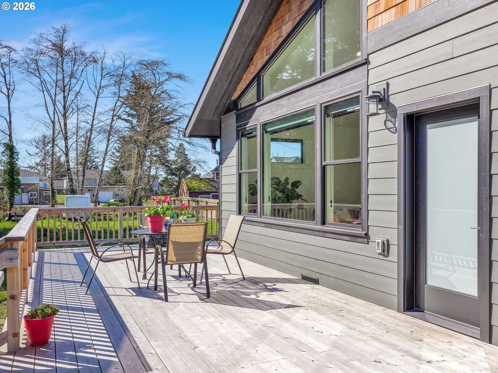 This beautiful Gearhart property offers 4 bedrooms, 2.5 bathrooms, two outbuildings, and sits on just over half an acre on a quiet non-through lane. With space, light, and flexibility both inside and out, this home is designed for comfortable coastal living.The open-concept kitchen, living, and dining areas feature vaulted ceilings, while the remaining rooms and hallways offer 9’ ceilings—all filled with natural light. The kitchen is well-appointed with quartz countertops, a large island with storage and seating for six, double pantry cabinets, and abundant drawer space.A small office just off the living area provides an ideal work-from-home setup. The spacious primary suite includes a 17' x 17' bedroom, walk-in closet, and a beautifully finished bathroom with quartz counters, tile floors, a tiled walk-in shower, and a 6' soaking tub.Additional features include fiberglass double-hung windows throughout, an on-demand tankless hot water heater, and a utility room with GE washer and dryer and a convenient half bath.Outdoor living shines with a wraparound cedar deck on the east and south sides—perfect for relaxing and enjoying the natural setting. The property also includes an attached 24' x 24' garage with extra-tall ceilings and a 9' door, plus a detached 24' x 28' shop with tall door clearance, built-in shelving, and plywood-lined walls ideal for storage or workspace.The grounds feature a fire pit, garden shed with built-in shelving, and mature landscaping. The upper portion of the lot is graveled with ample room for an RV, boat, trailer, or additional parking.Don’t miss this exceptional Gearhart property.