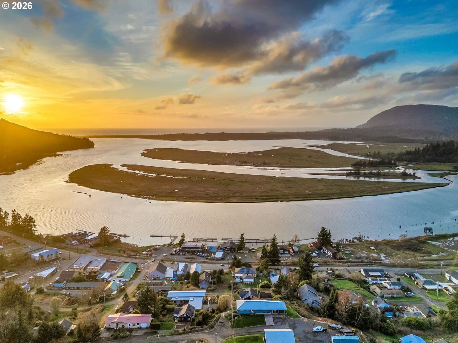 Rare opportunity to own a unique custom-built coastal property with views of the bay. This home has been lovingly cared for by the same family since it was built and sits on a beautifully landscaped half-acre lot just minutes from Manzanita’s shops, restaurants, and beaches. The property includes three separate structures: the main home, an apartment with shop space on lower level, and a 2-bay boat barn. The main home was designed to resemble the bow of a boat and features a wraparound porch overlooking the water. Inside you’ll find an open main level with high ceilings, a spacious kitchen, living and dining areas, bedroom, laundry, and full bath. The lower level includes a garage, second bedroom, full bathroom, office space/3rd bedroom with Murphy bed, and additional storage.The separate apartment with bay views has full living quarters on upper-level with kitchen, living/dining, bedroom, bathroom, and washer/dryer. The lower level offers unfinished shop space with storage and a half bath. The boat barn has two bays and additional workspace for hobbies, woodworking, or storage. Set back from the main road with spectacular views, this special property offers the flexibility of a coastal home, retirement retreat, and/or investment opportunity.