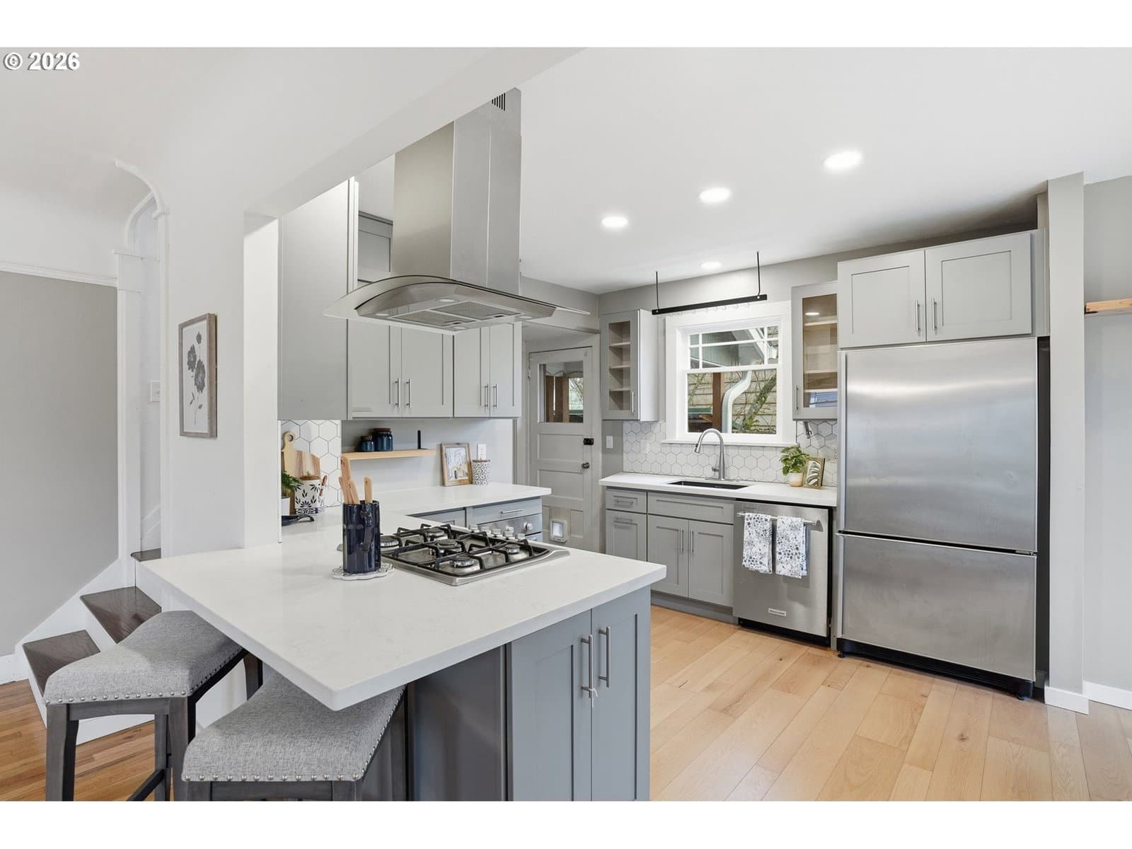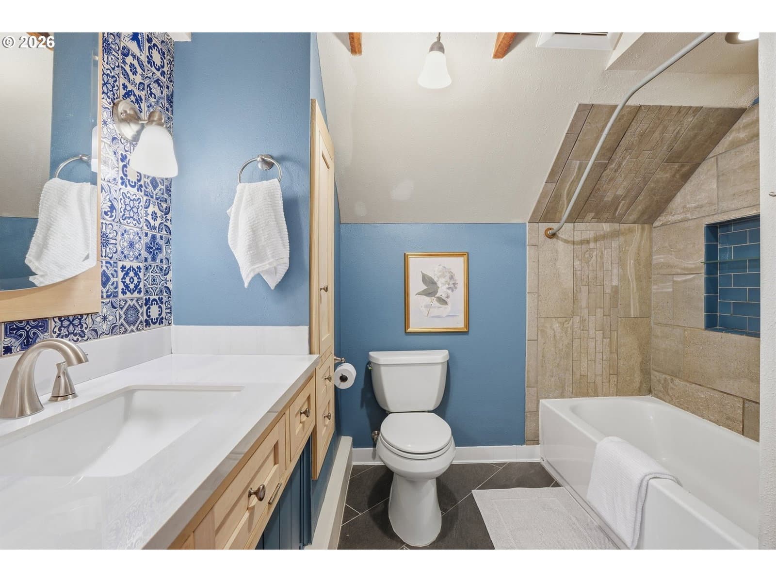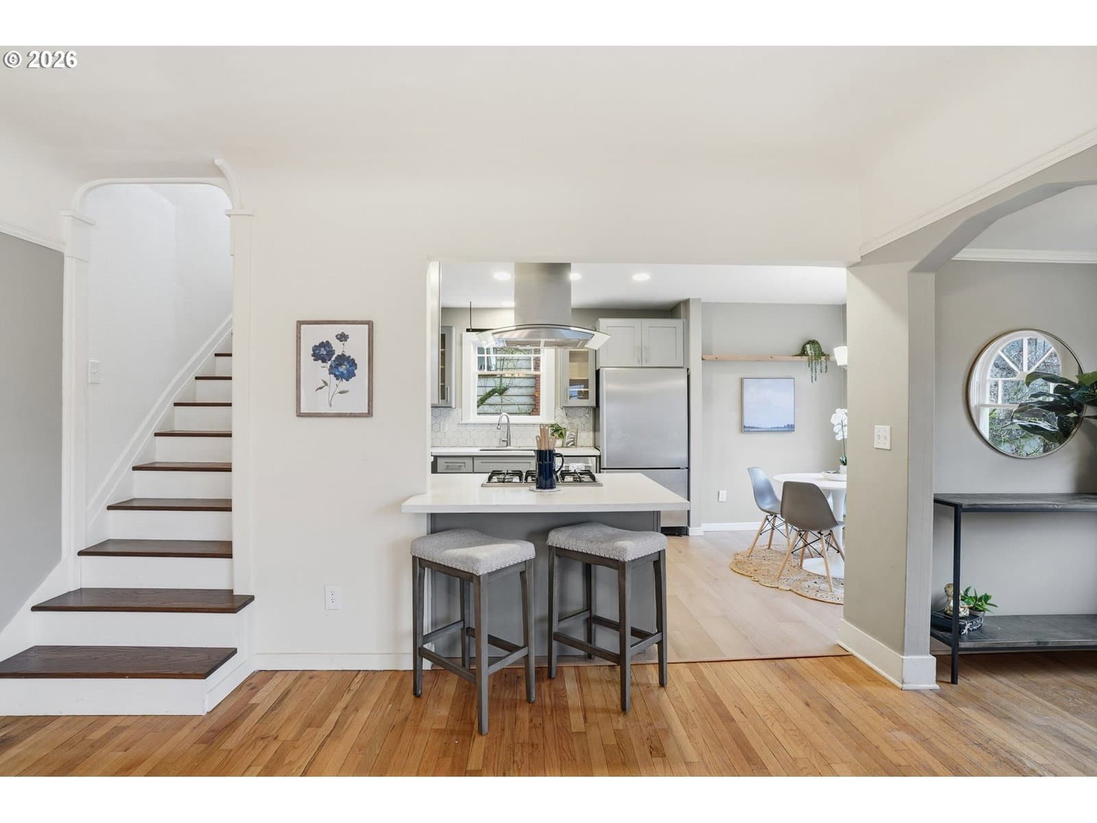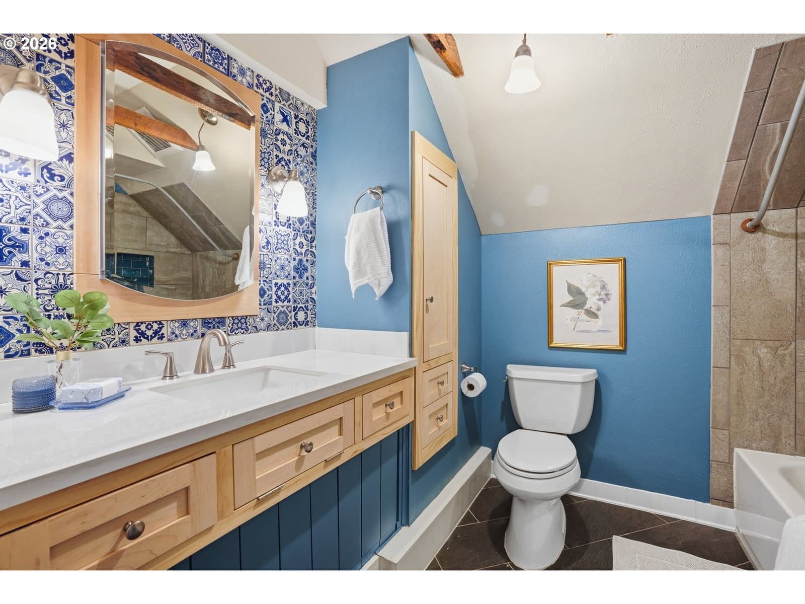 Tucked away in the heart of St. Johns, this charming home feels like a private retreat surrounded by its own secret garden. Inside, you’ll find three bedrooms, two full bathrooms, and a versatile lower-level bonus room, perfect for a media space, gym, or guest area.The beautifully updated kitchen features quartz countertops, stainless steel appliances, and a sunny breakfast nook, offering the ideal blend of function and warmth. Thoughtful updates throughout preserve the home’s original character while seamlessly incorporating modern comforts.Upstairs, the spacious primary suite is a true sanctuary with an en suite bathroom, walk-in closet, and a dedicated office nook.Step outside to a lush, private backyard with a stone patio made for entertaining or relaxing. A detached garage/shop plumbed with water and heat provides endless possibilities for storage, hobbies, a wood shop, or creative space.Major improvements include a new roof (2024), new A/C, furnace, and water heater (2023), new exterior and lower level interior paint, and a remodeled kitchen (2024). A special opportunity to own a thoughtfully updated St. Johns gem where charm, comfort, and functionality come together beautifully. [Home Energy Score = 3. HES Report at https://rpt.greenbuildingregistry.com/hes/OR10243968]